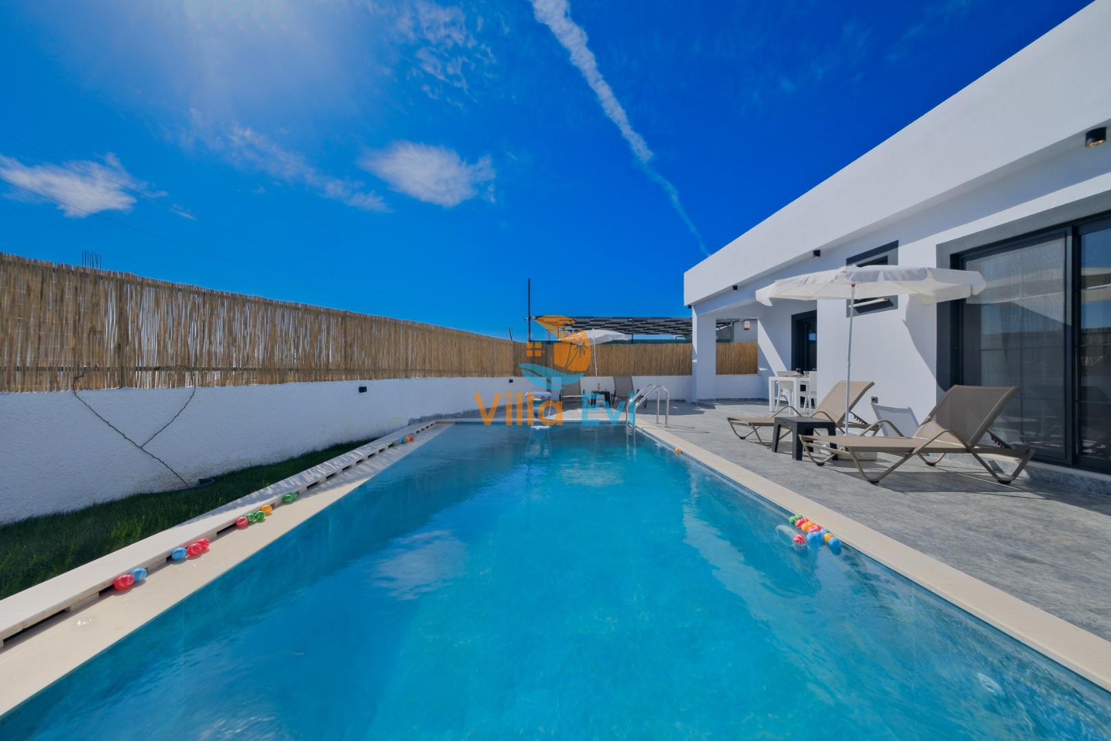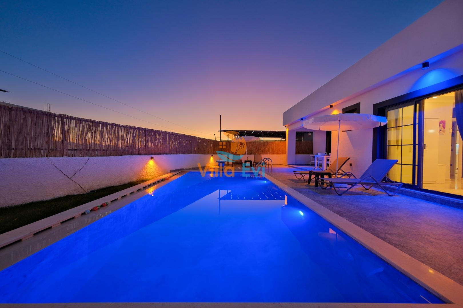 Villamızın müstakil yüzme havuzu dışarıdan görünmeyecek şekilde tasarlanmıştır.