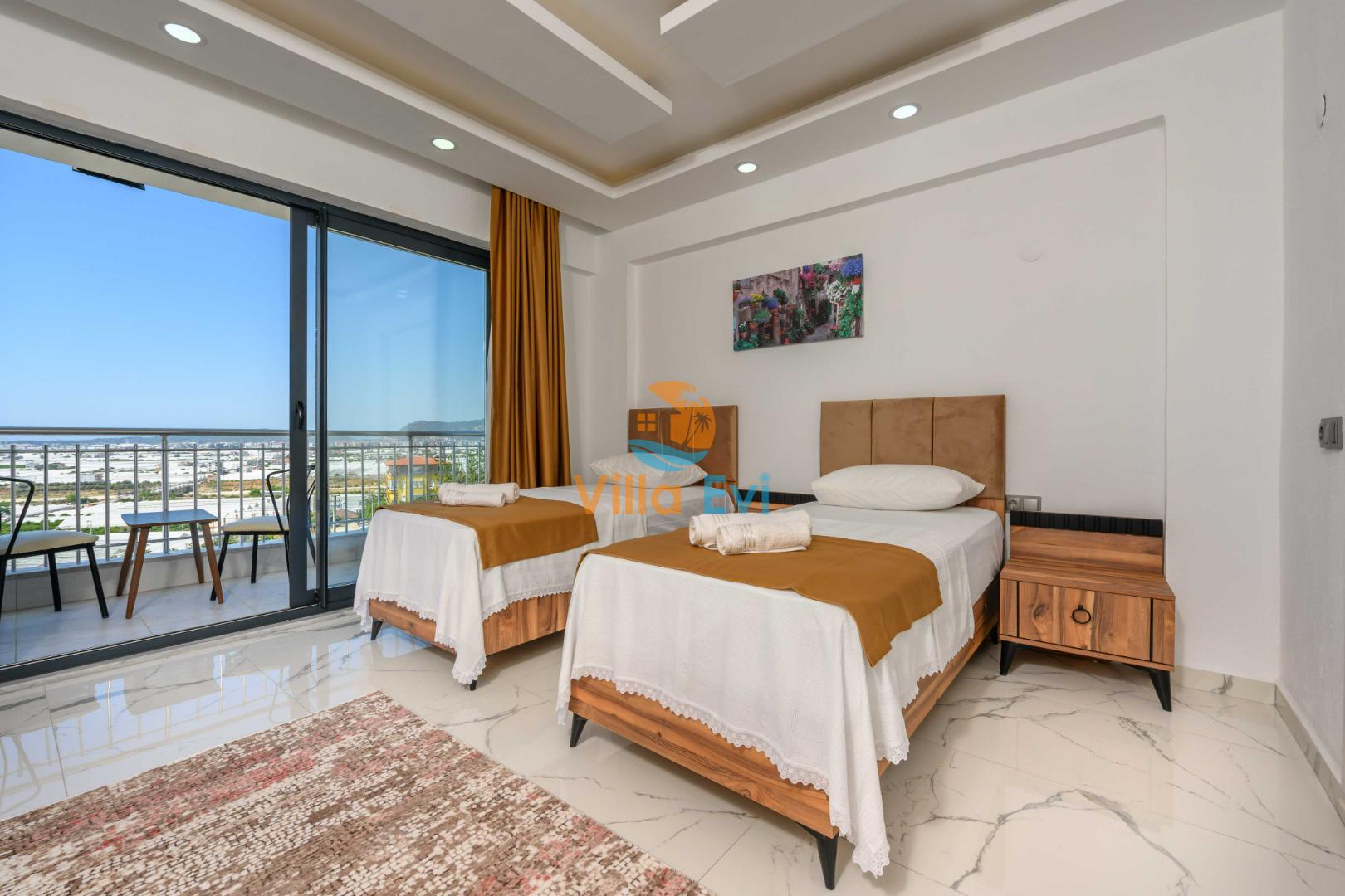 3. Yatak Odası: 2 adet tek kişilik yatak, elbise dolabı, makyaj masası, komodin ve klima mevcuttur.