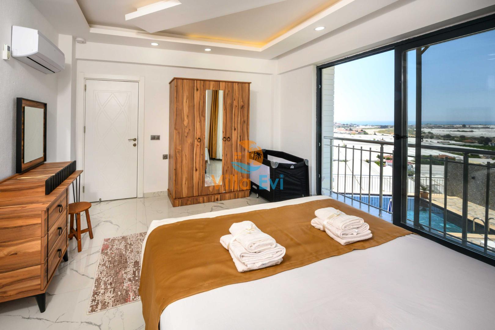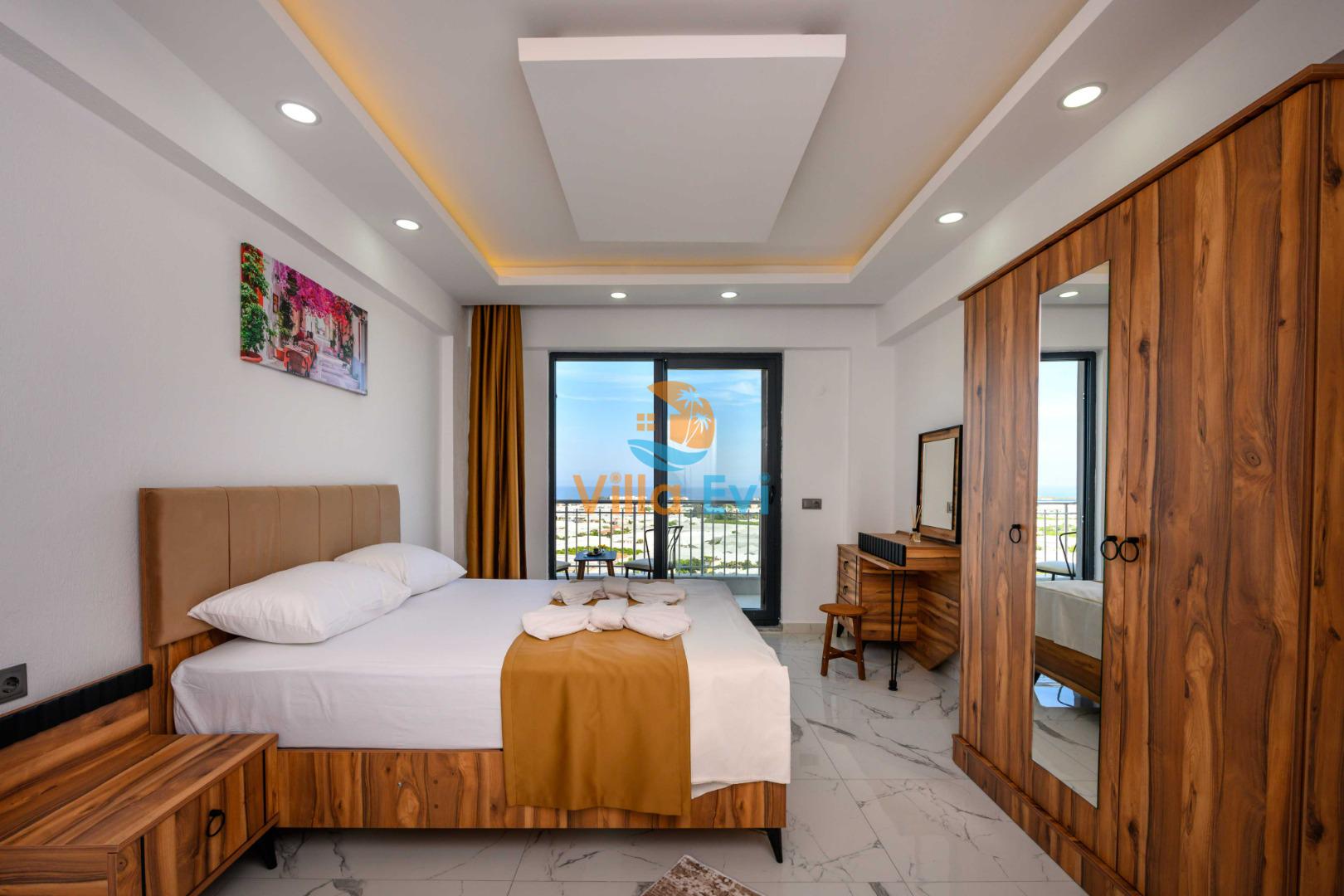 2. Yatak Odası: 1 adet çift kişilik yatak, elbise dolabı, makyaj masası, komodin ve klima mevcuttur.