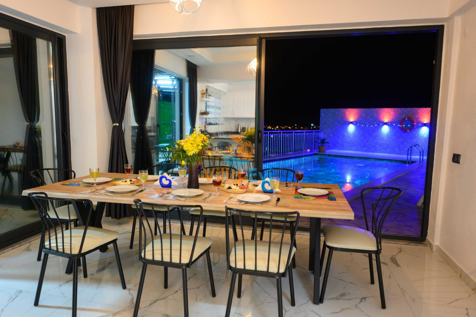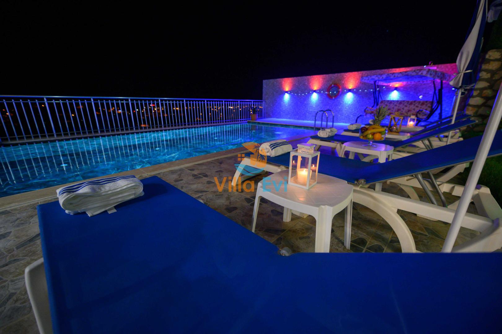 Villa, muhafazakar misafirlerimizin mahremiyetine uygun şekilde tasarlanmış özel havuz alanına sahiptir.