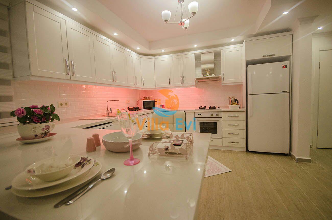 Ev rahatlığında yemek hazırlama imkânı sunan bu alan, kiralık villalar arasında konforu ön plana çıkarır.