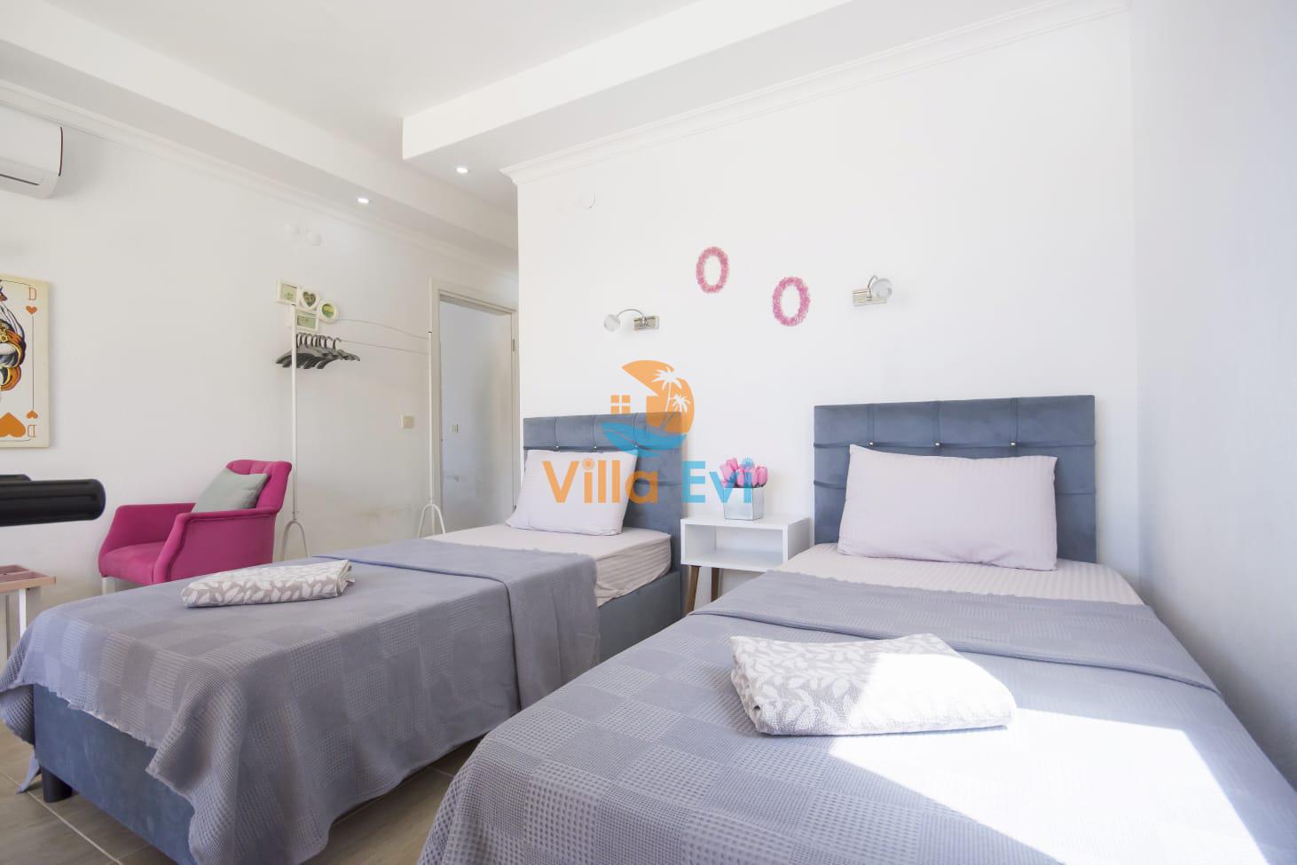2 yatak odası ve 2 banyosu bulunan villamız, 4 kişilik konaklama kapasitesi ile hem balayı villası arayan çiftler hem de küçük aileler için ideal bir tatil villasıdır.