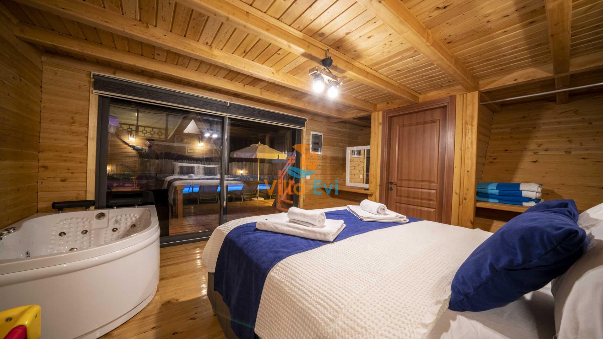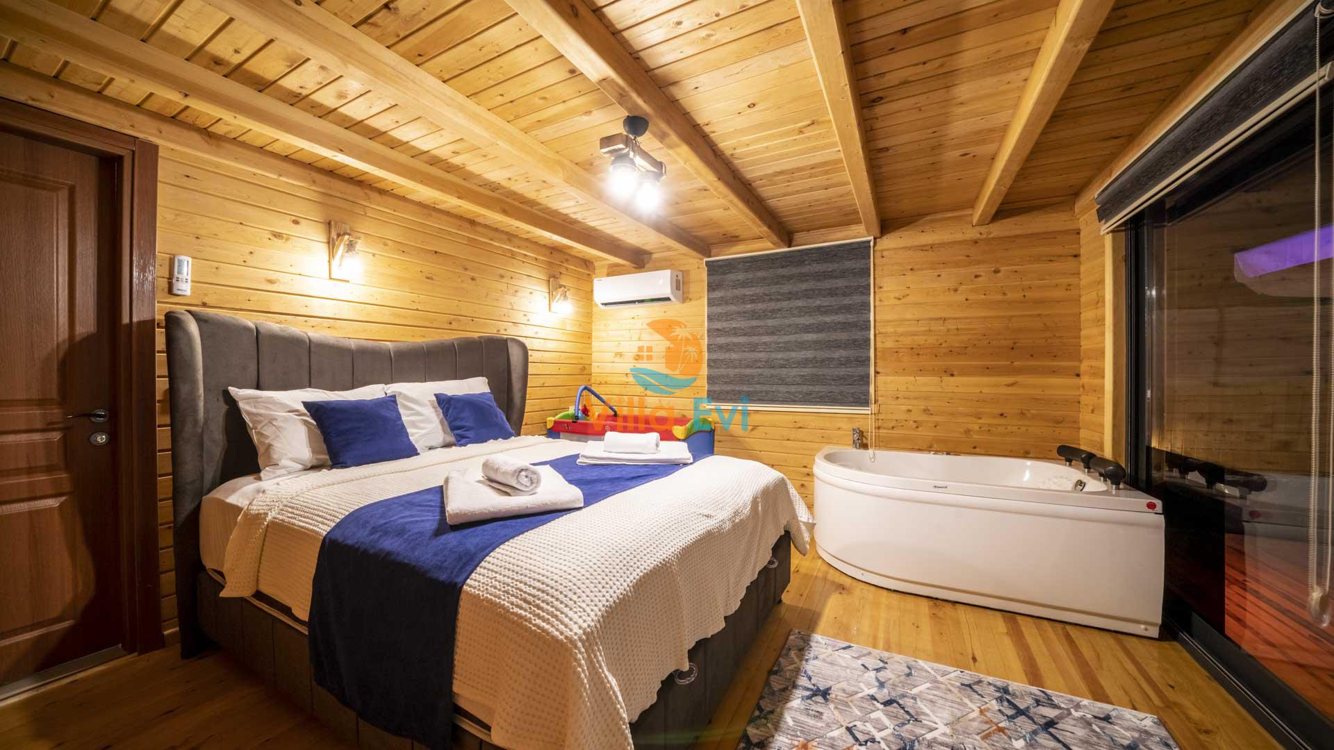 1 adet çift kişilik yatak, Jakuzi,Elbise dolabı, Makyaj masası, Komodin, Klima, Banyo & WC