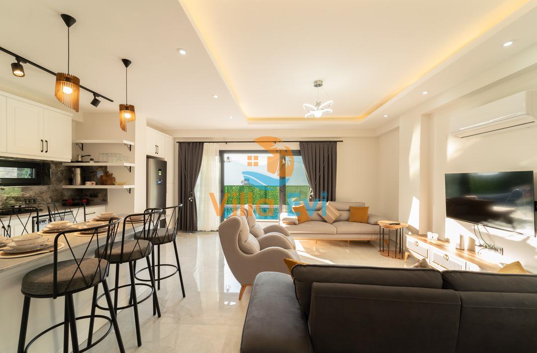 Oturma Alanı: Misafirlerini kucaklamaya hazır, konforlu ve geniş bir oturma grubu, dinlenmeniz için ideal bir ortam sağlar.