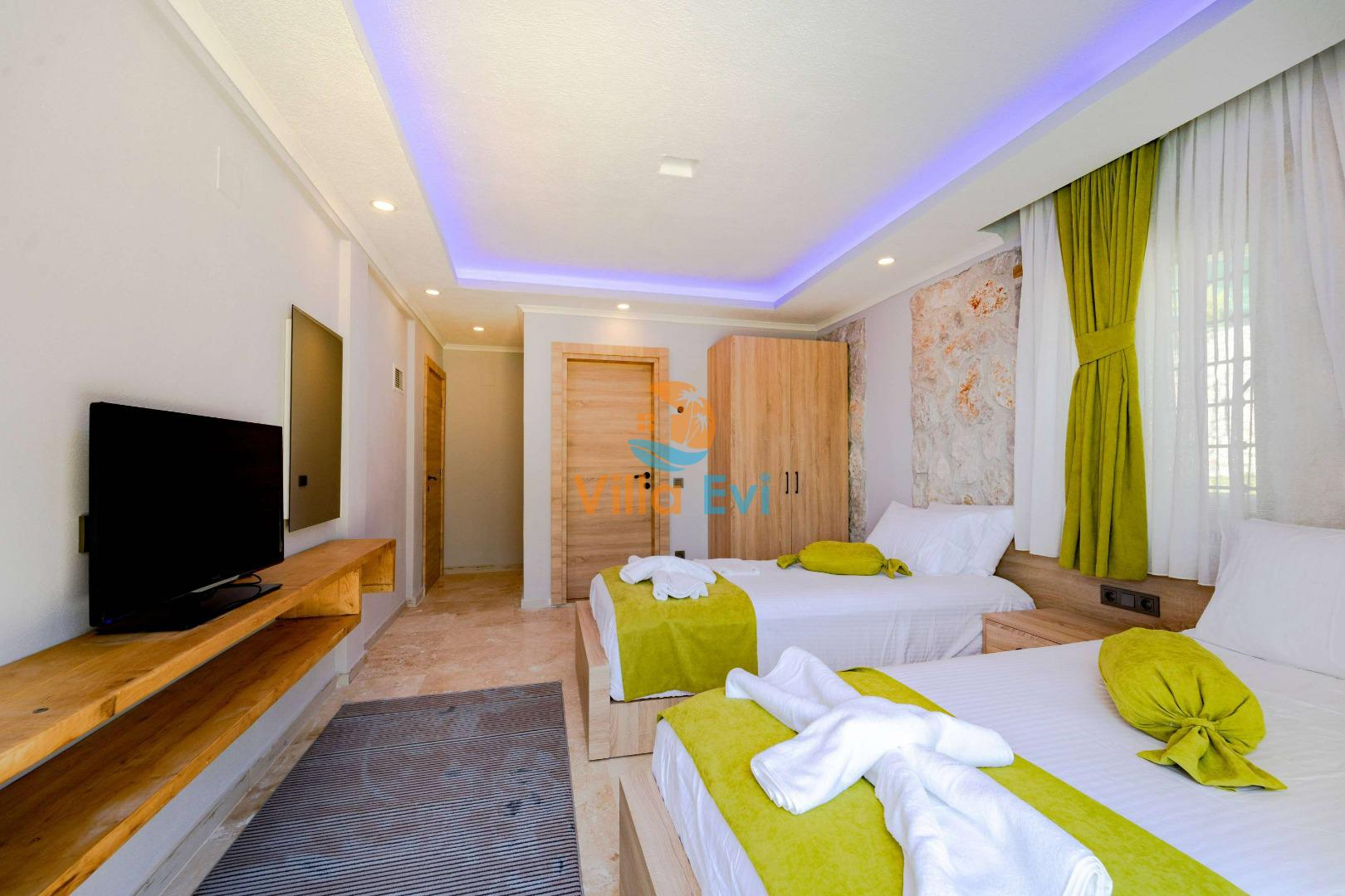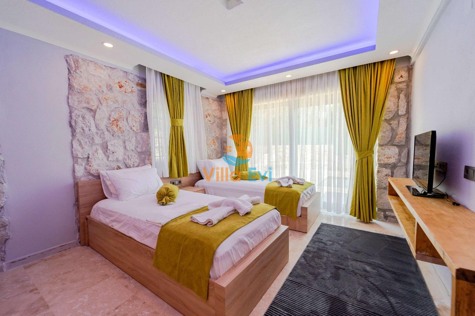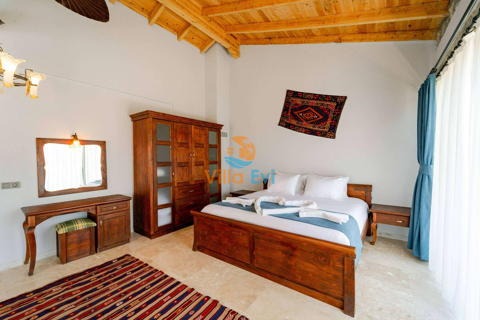 Villa Harika toplam 3 yatak odası ve 6 kişilik kapasiteye sahiptir.