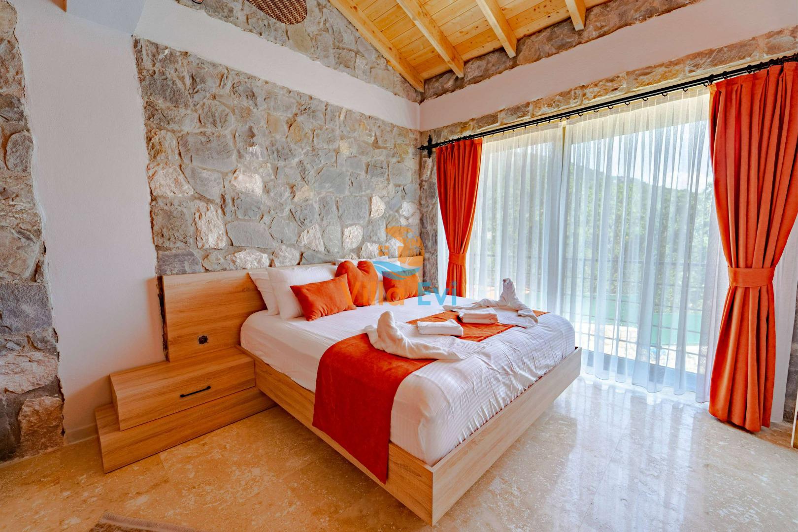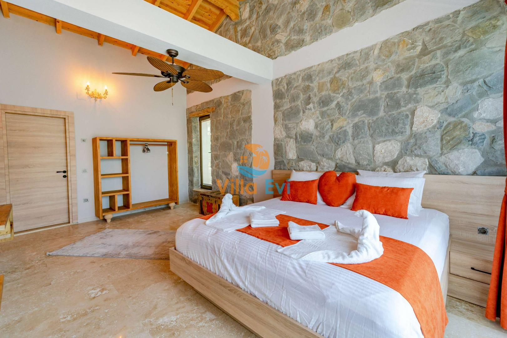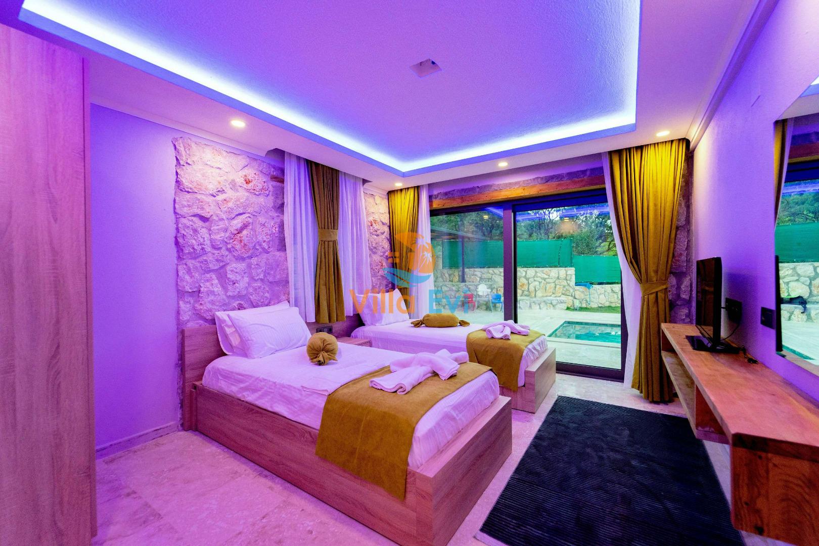 Villa Harika toplam 3 yatak odası ve 6 kişilik kapasiteye sahiptir.