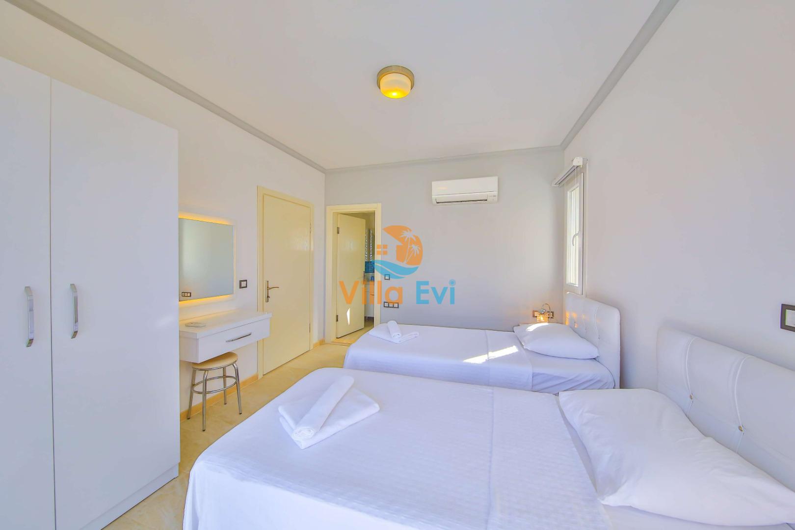 2 adet tek kişilik yatak, Klima, Elbise dolabı, Makyaj masası ve Banyo & WC