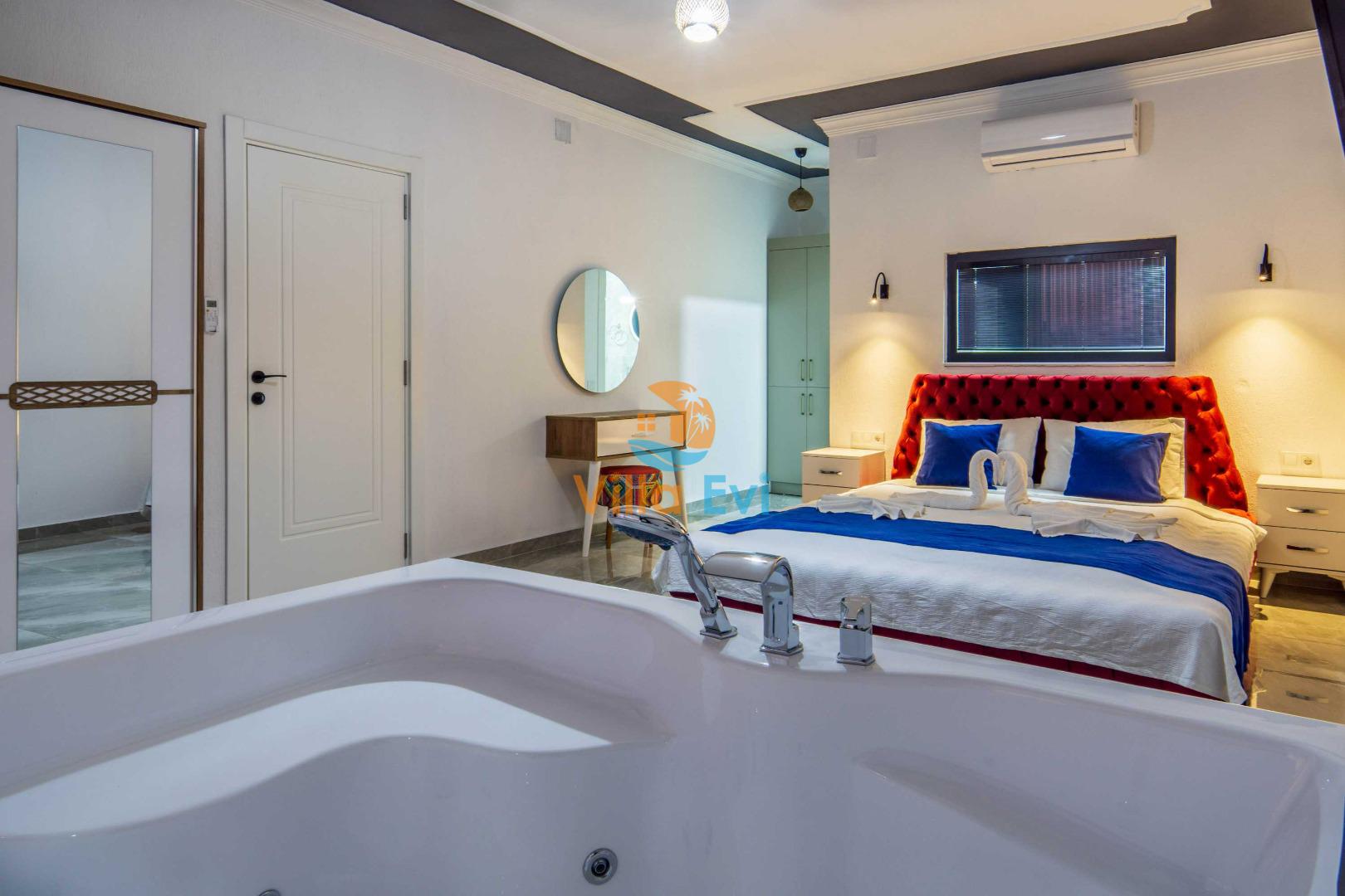 Büyüleyici deniz manzaralı konumu ve Kalkan merkeze yakınlığı sayesinde kolay ulaşım imkanı sunan bu Kalkan kiralık villa, şehir hayatının stresinden uzaklaşmak ve doğanın kucağında huzur bulmak isteyenler için ideal bir tercihtir. Konforlu ve şık iç mekân tasarımı, ferah ve kullanışlı dış alanıyla misafirlerine unutulmaz bir konaklama deneyimi yaşatırken, Kalkan'ın eşsiz güzellikleriyle çevrili doğal ortamıyla da huzurlu bir Kalkan villa kiralama tatili vaat ediyor.