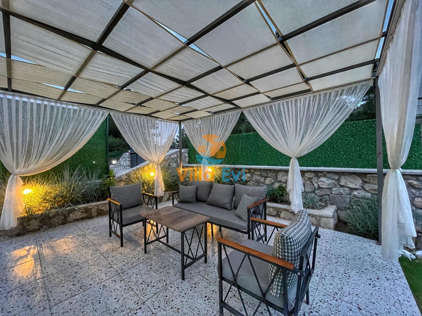 Bahçe: Açık özel yüzme havuzu, şezlong, şemsiye, 2 adet oturma alanı, özel barbekü.