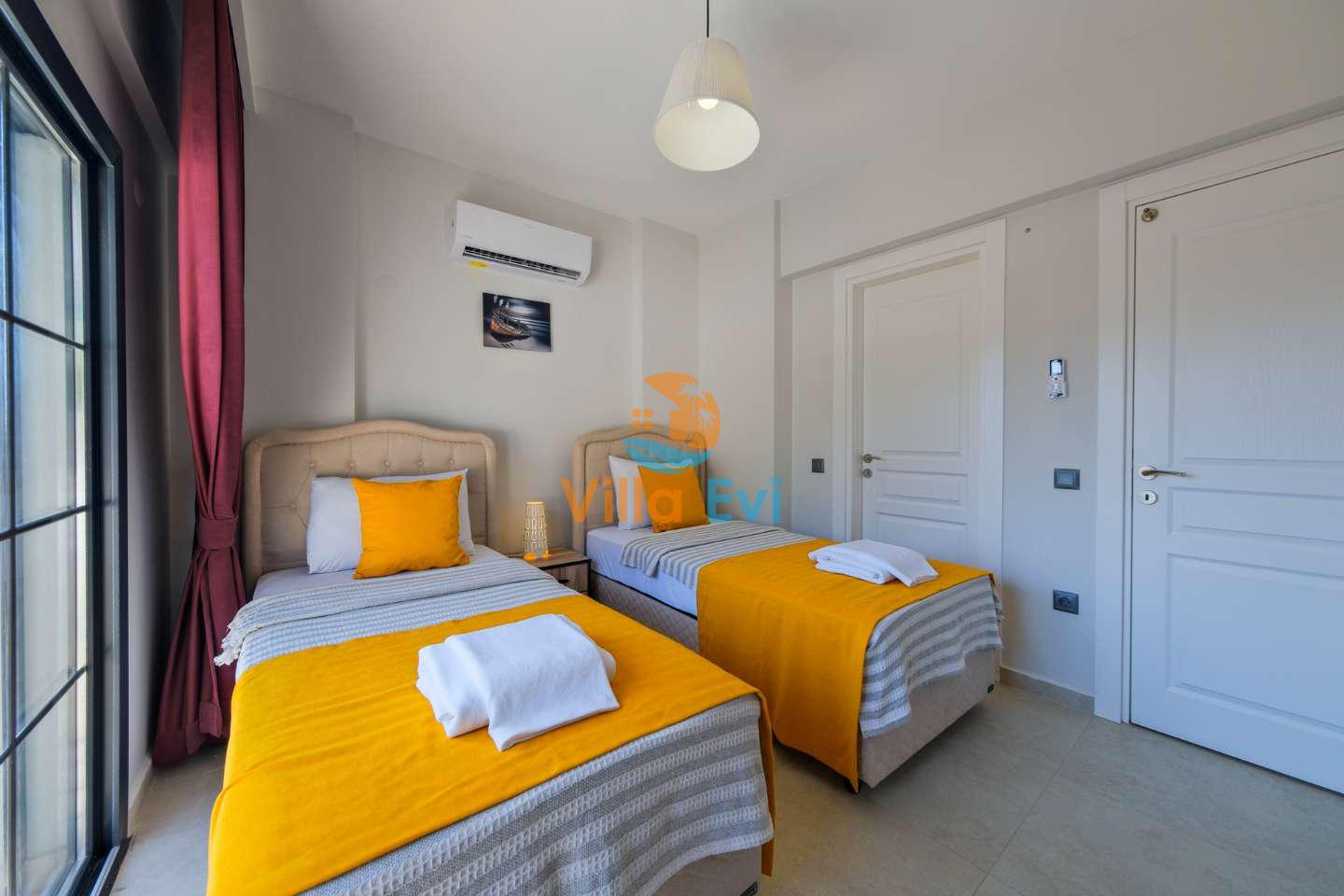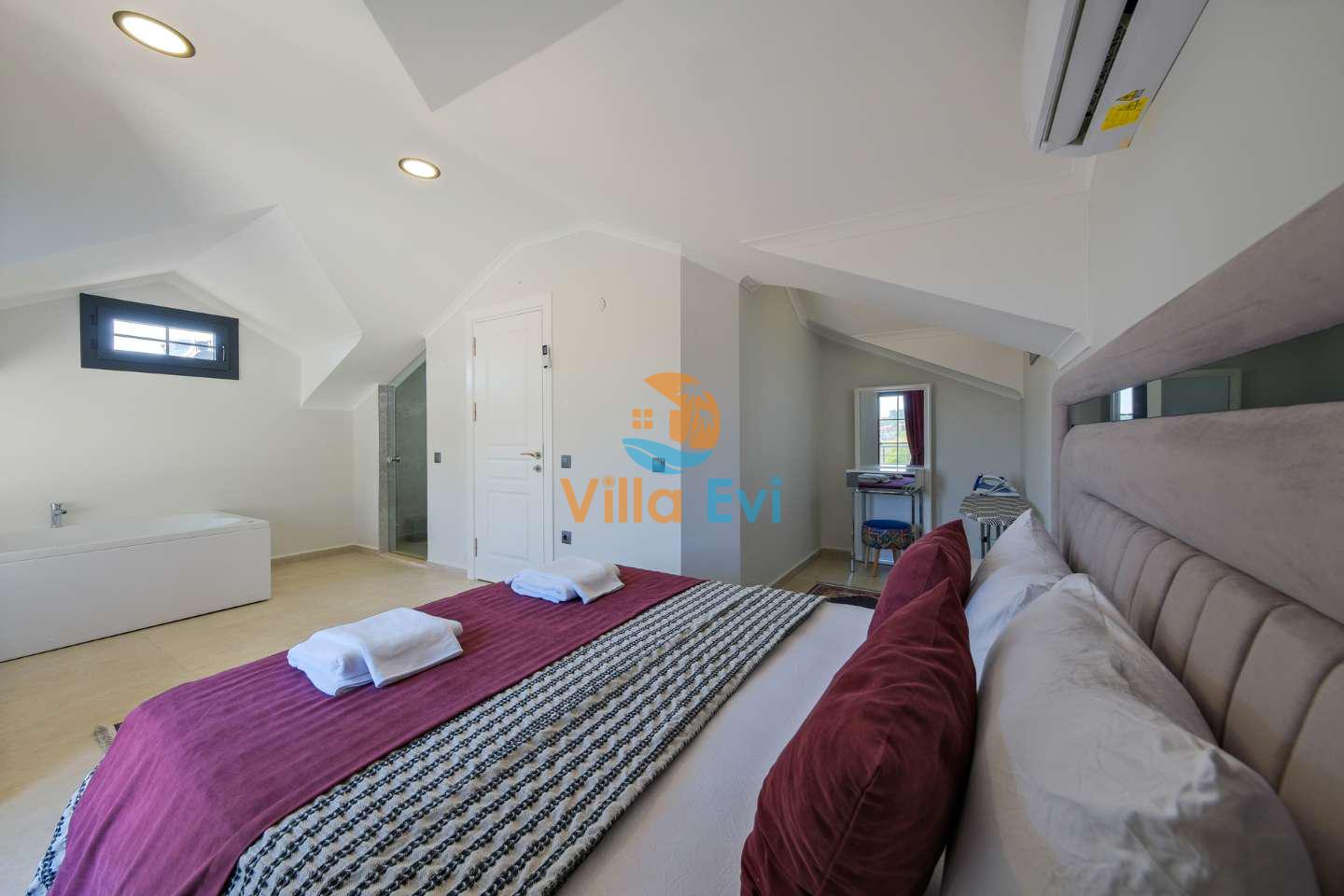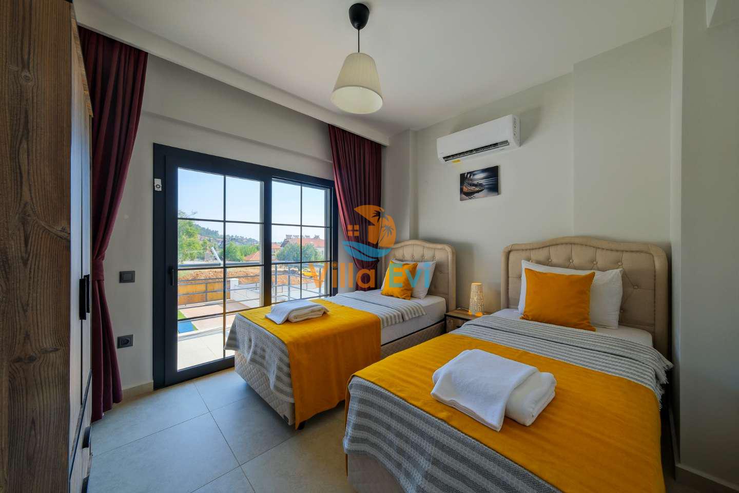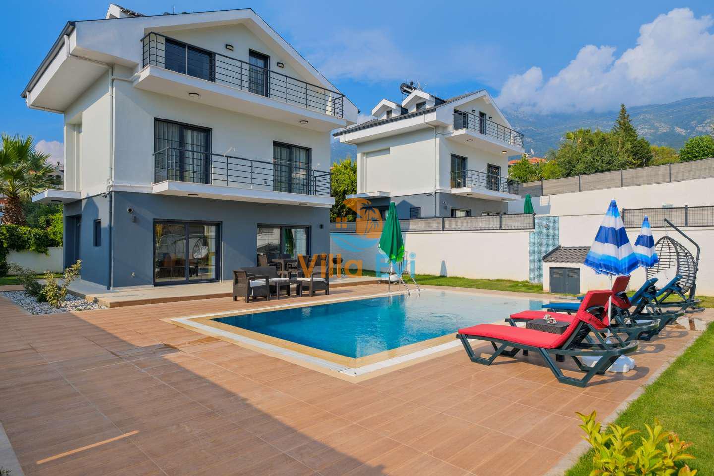 Fethiye Ölüdeniz mevkiinde yer alan bu özel havuzlu kiralık villa, 3 yatak odası ve 6 kişilik konaklama kapasitesi ile hem geniş aileler hem de kalabalık arkadaş grupları için ideal bir villa kiralama alternatifidir.