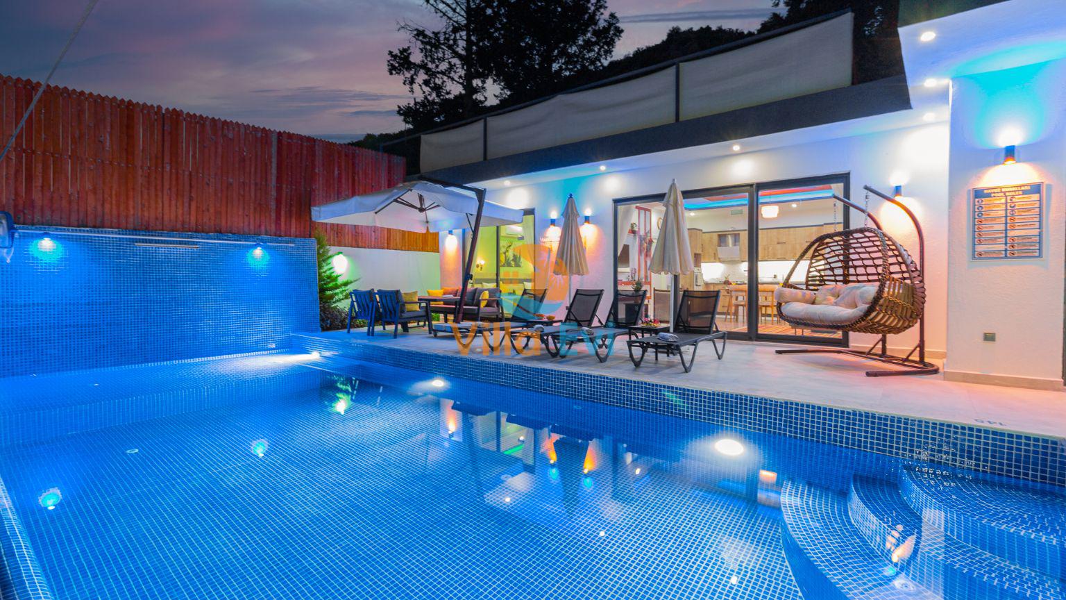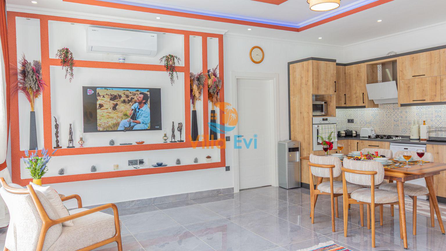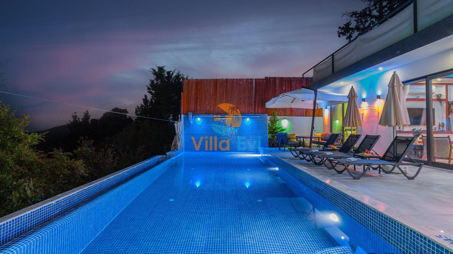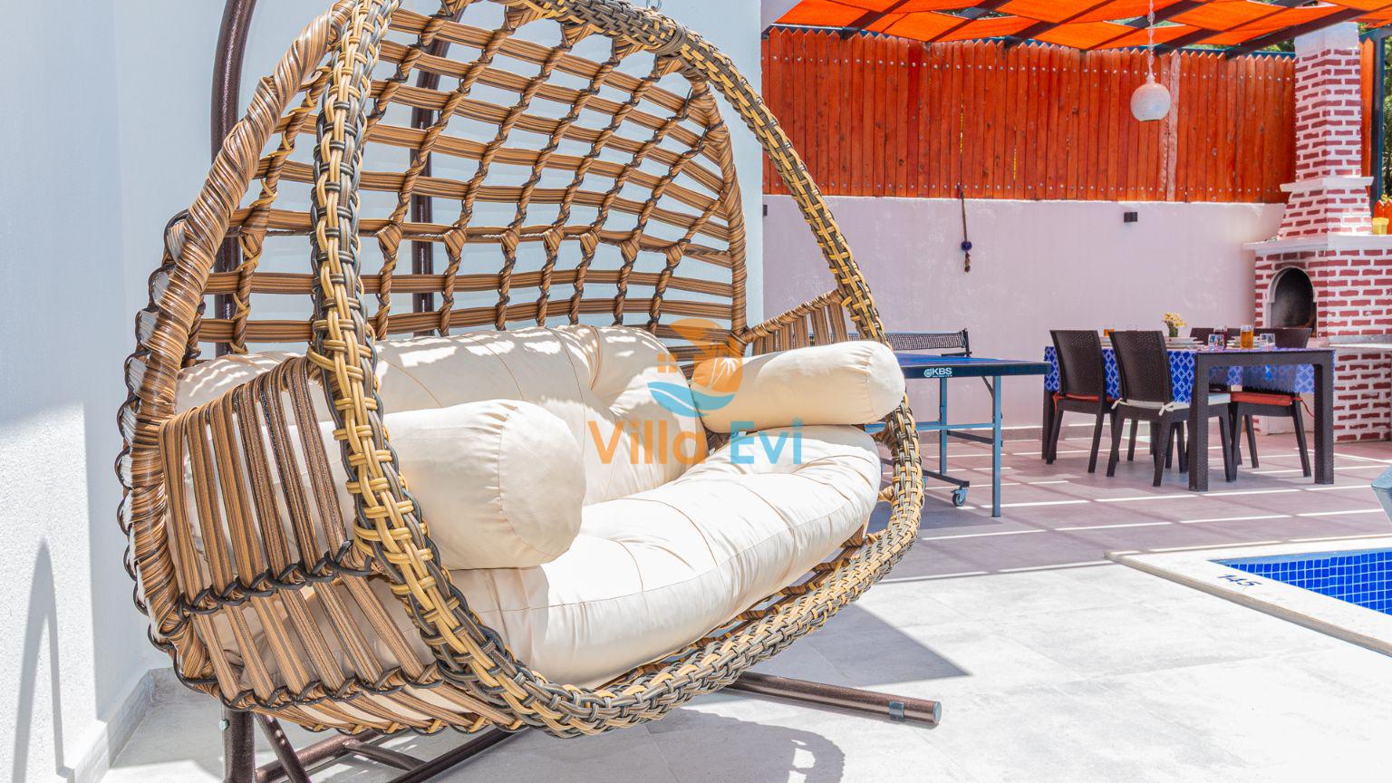 Villamız, modern ve zevkli mobilyalarla dekore edilmiş iç mekanlara sahiptir. Konforunuz için her detayın düşünüldüğü bu şık yaşam alanında, kendinizi evinizde gibi hissedeceksiniz. Villaya ait özel yüzme havuzu, doğa manzarasının eşlik ettiği keyifli anlar geçirmeniz için özenle tasarlanmıştır. Güneşlenme terasında dinlenmek ve Akdeniz güneşiyle enerji depolamak isteyenler için ideal bir kaçış noktasıdır.