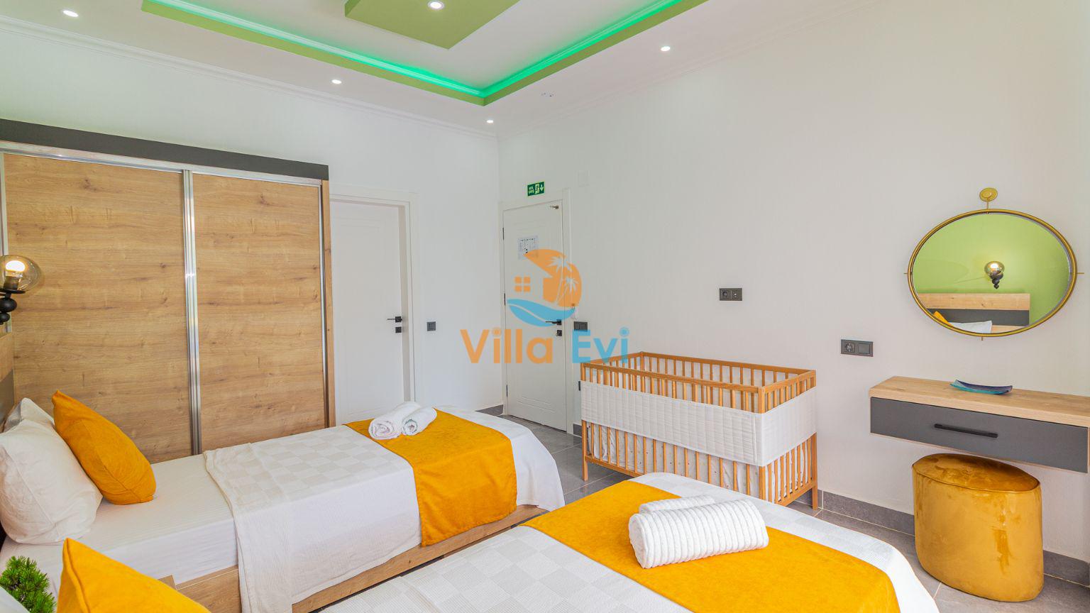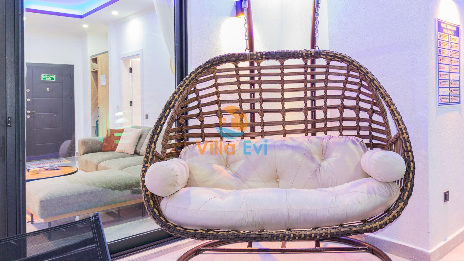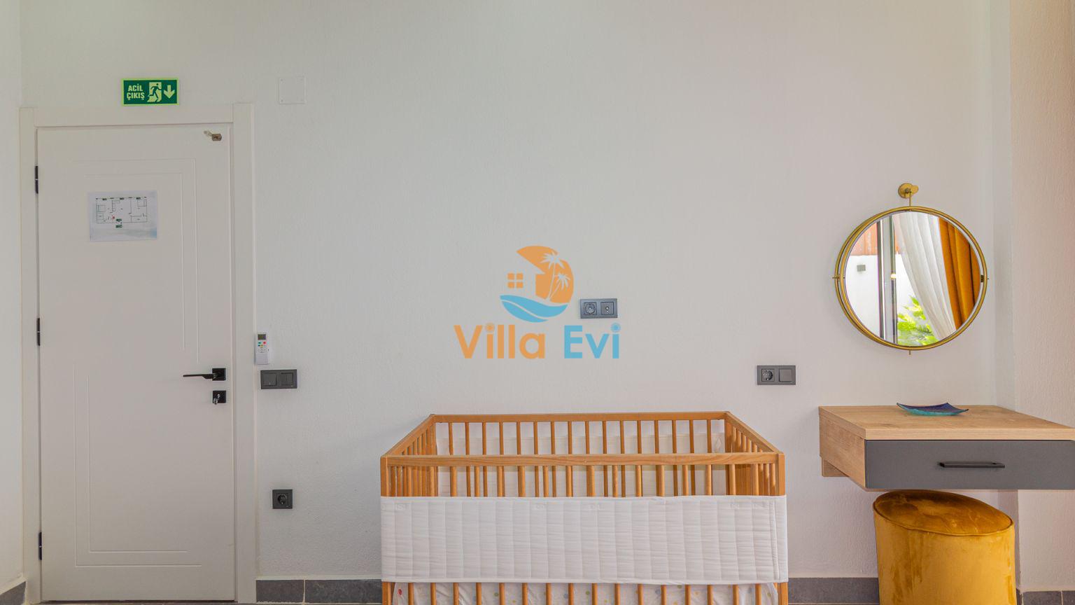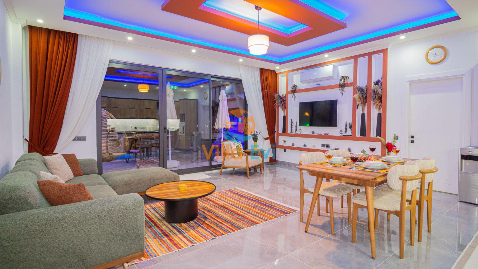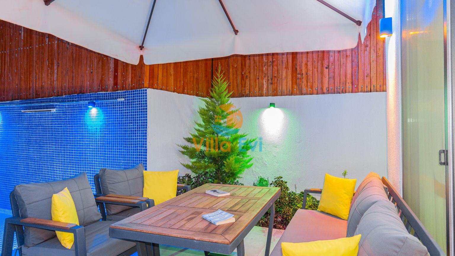 Villamız, modern ve zevkli mobilyalarla dekore edilmiş iç mekanlara sahiptir. Konforunuz için her detayın düşünüldüğü bu şık yaşam alanında, kendinizi evinizde gibi hissedeceksiniz. Villaya ait özel yüzme havuzu, doğa manzarasının eşlik ettiği keyifli anlar geçirmeniz için özenle tasarlanmıştır. Güneşlenme terasında dinlenmek ve Akdeniz güneşiyle enerji depolamak isteyenler için ideal bir kaçış noktasıdır.
