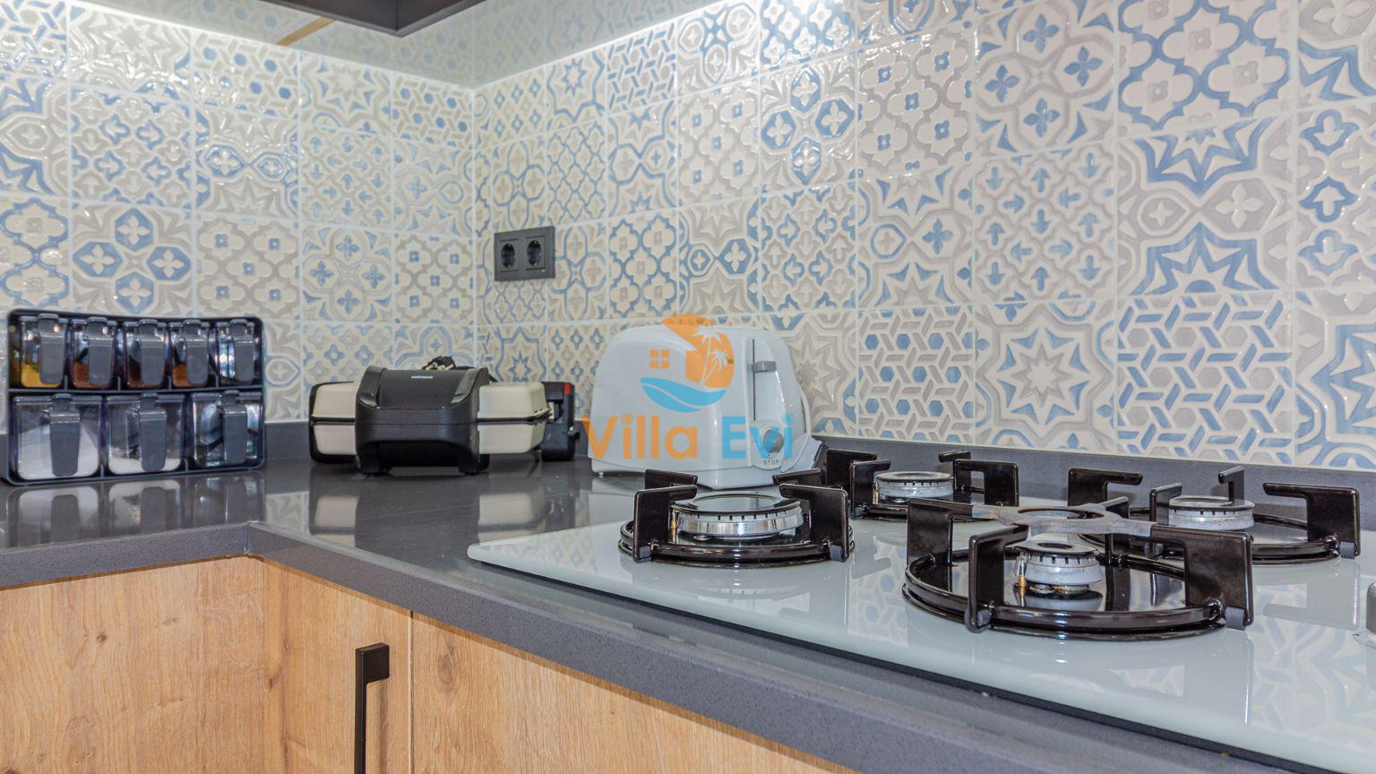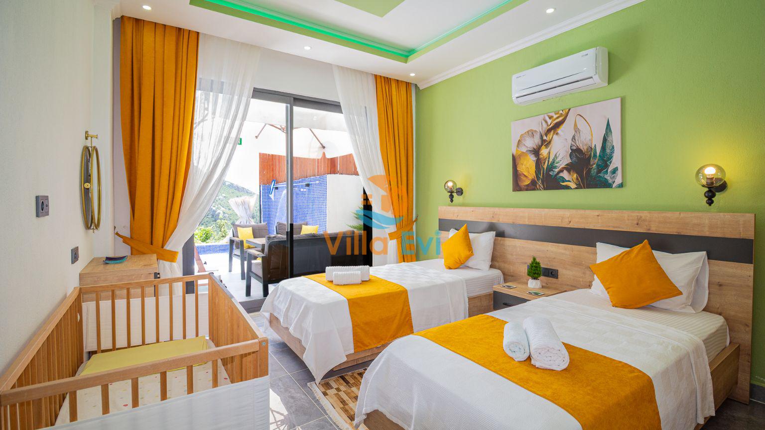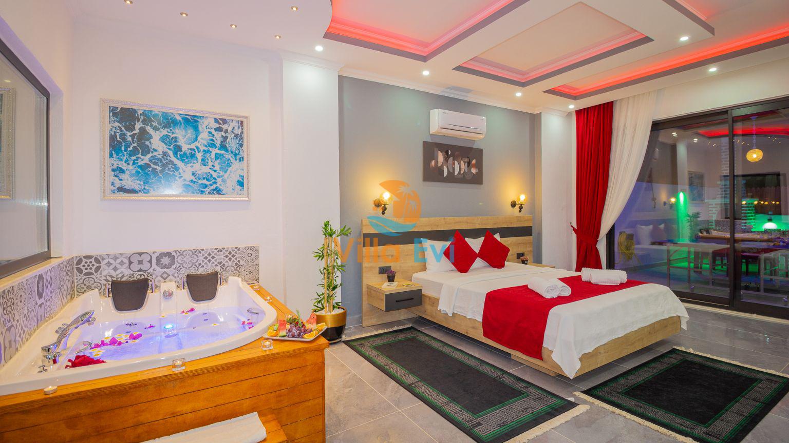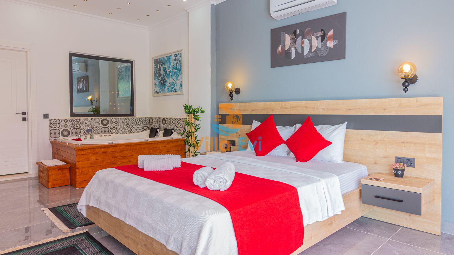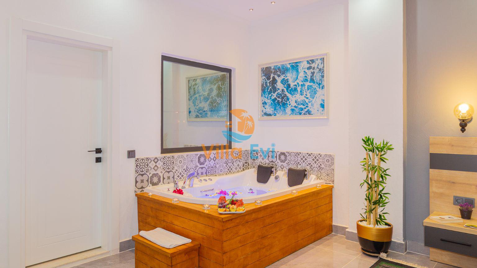 Villamız, modern ve zevkli mobilyalarla dekore edilmiş iç mekanlara sahiptir. Konforunuz için her detayın düşünüldüğü bu şık yaşam alanında, kendinizi evinizde gibi hissedeceksiniz. Villaya ait özel yüzme havuzu, doğa manzarasının eşlik ettiği keyifli anlar geçirmeniz için özenle tasarlanmıştır. Güneşlenme terasında dinlenmek ve Akdeniz güneşiyle enerji depolamak isteyenler için ideal bir kaçış noktasıdır.