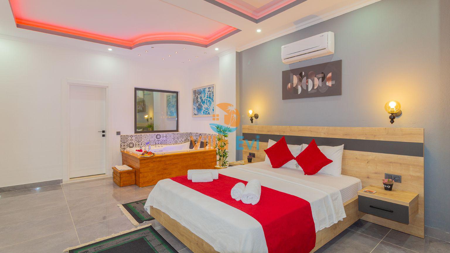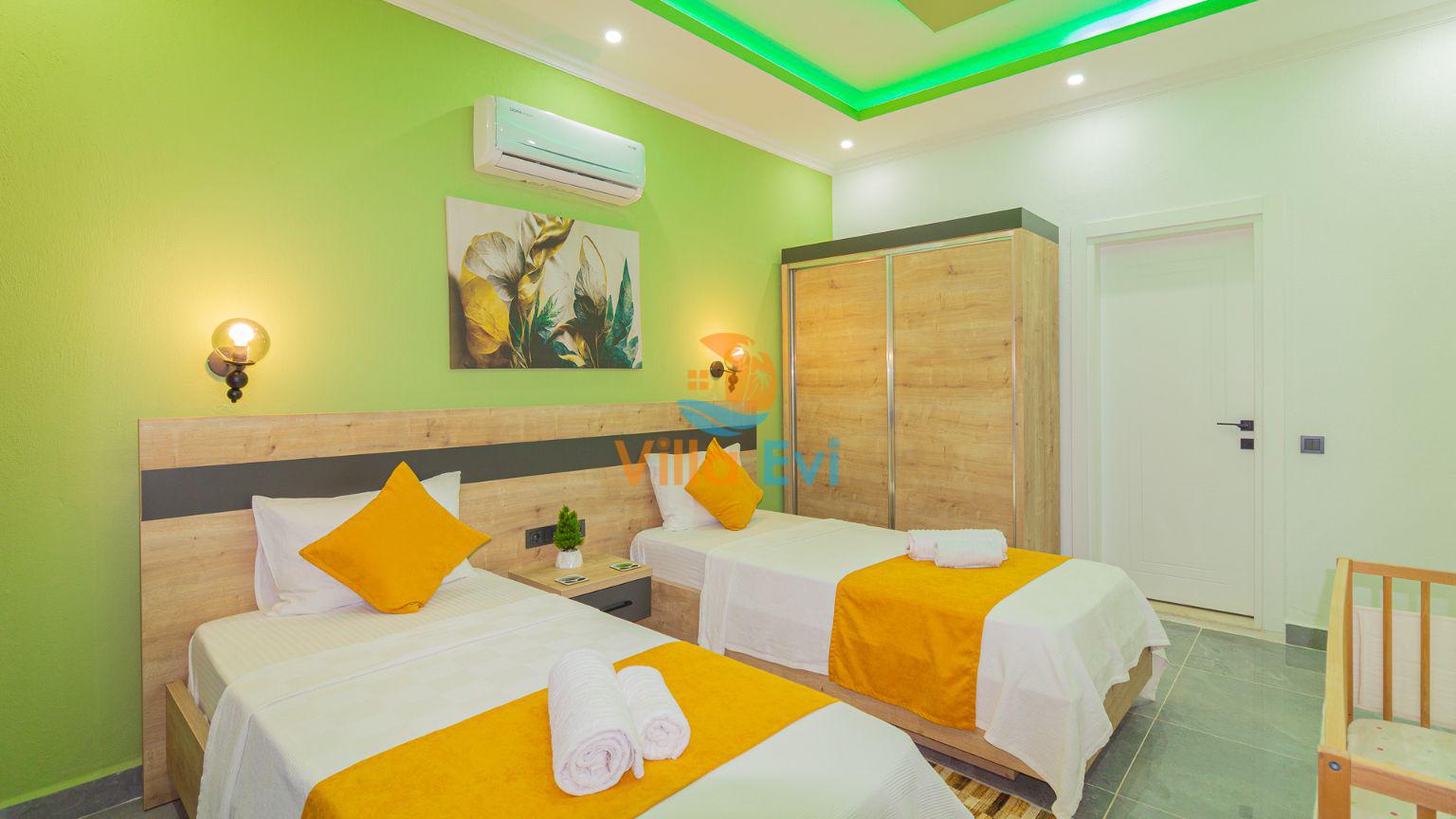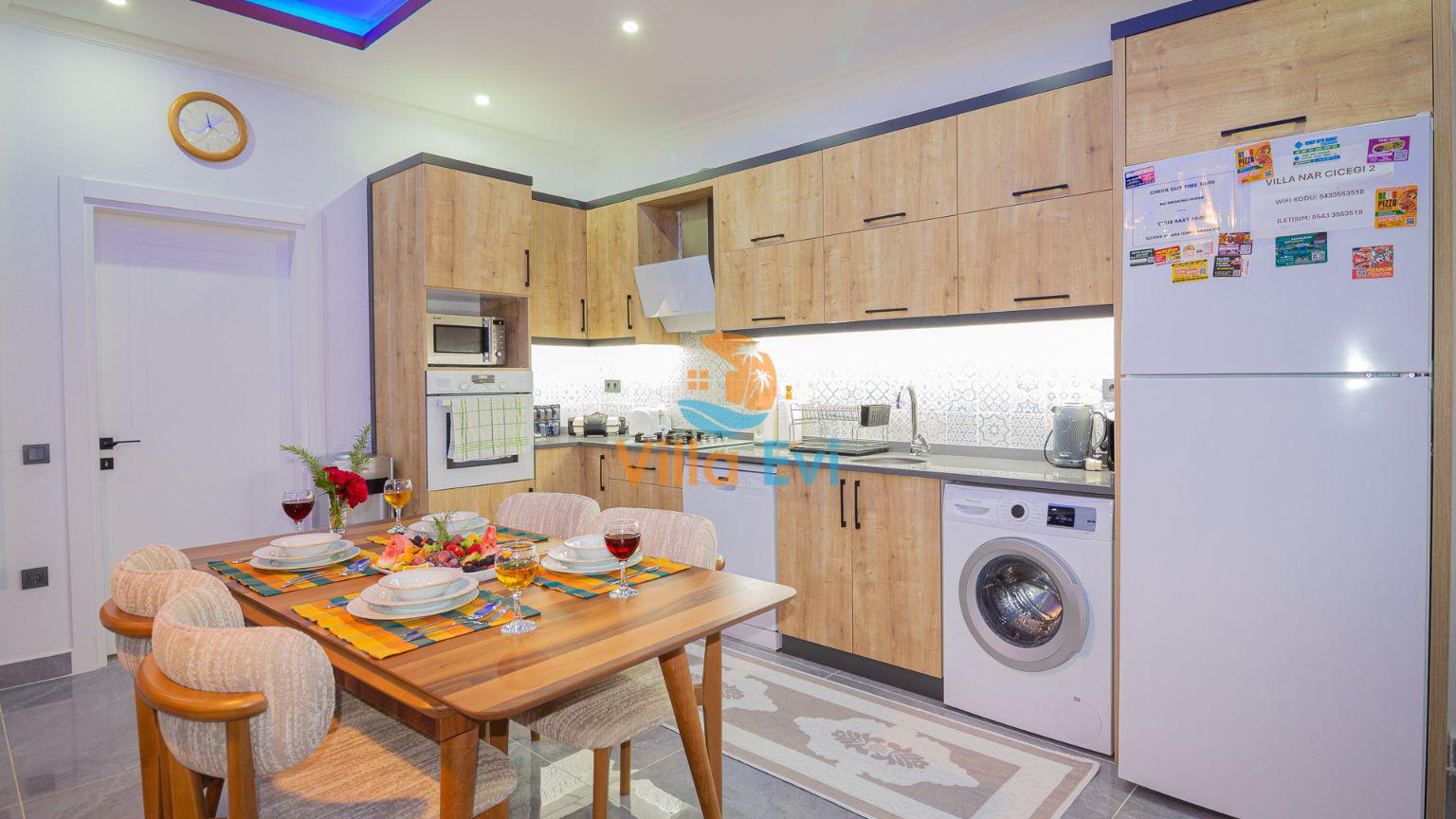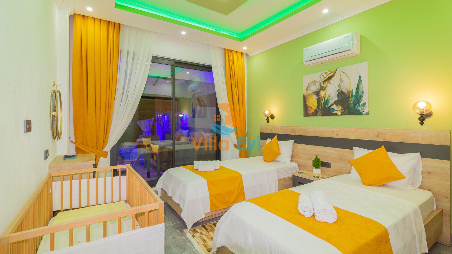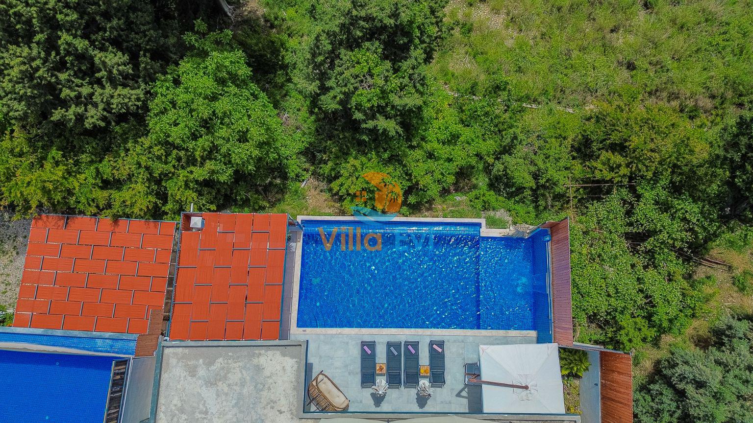 Villamız, modern ve zevkli mobilyalarla dekore edilmiş iç mekanlara sahiptir. Konforunuz için her detayın düşünüldüğü bu şık yaşam alanında, kendinizi evinizde gibi hissedeceksiniz. Villaya ait özel yüzme havuzu, doğa manzarasının eşlik ettiği keyifli anlar geçirmeniz için özenle tasarlanmıştır. Güneşlenme terasında dinlenmek ve Akdeniz güneşiyle enerji depolamak isteyenler için ideal bir kaçış noktasıdır.