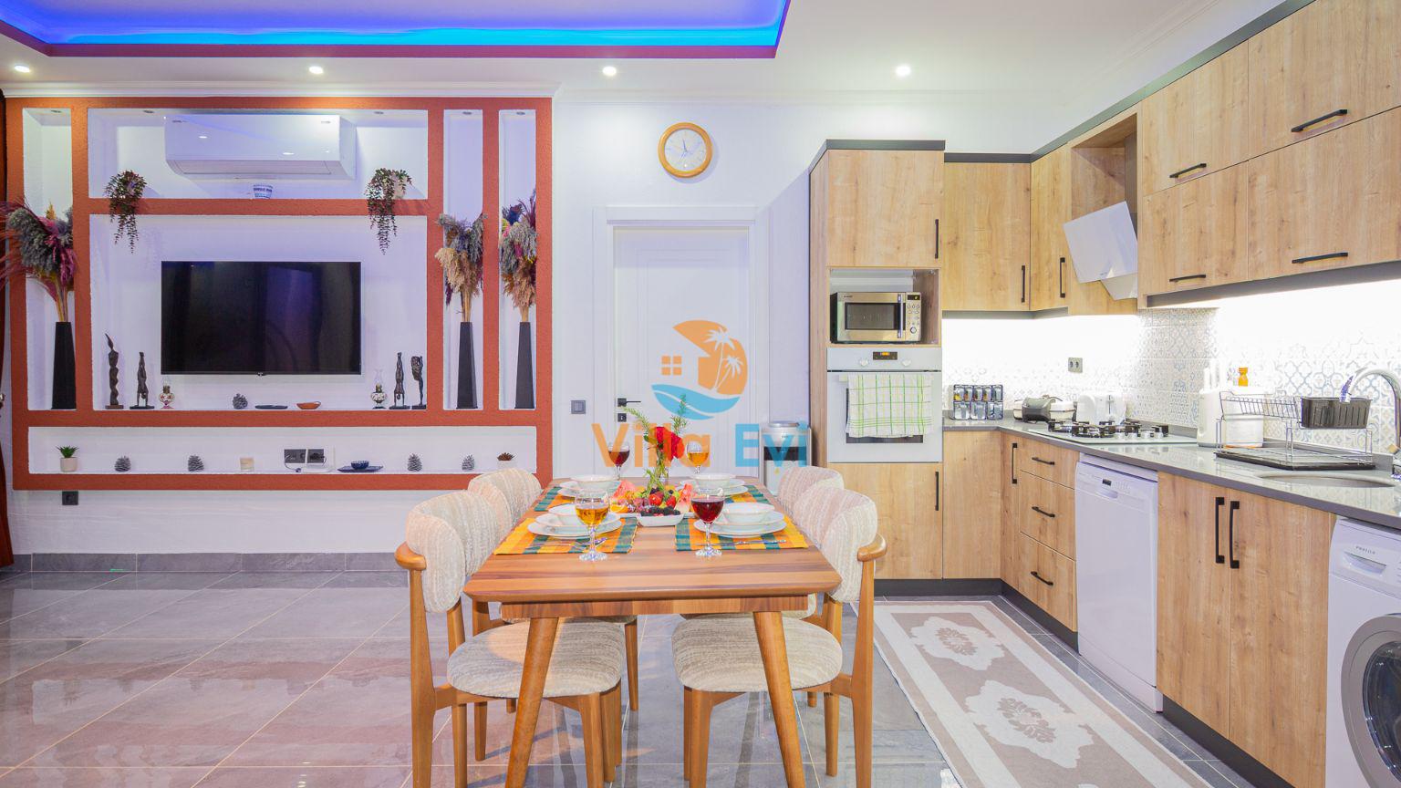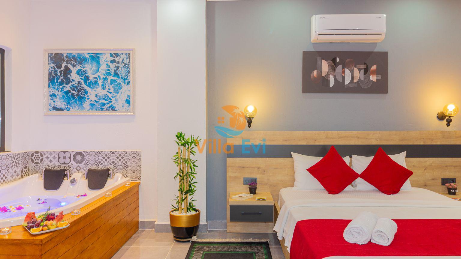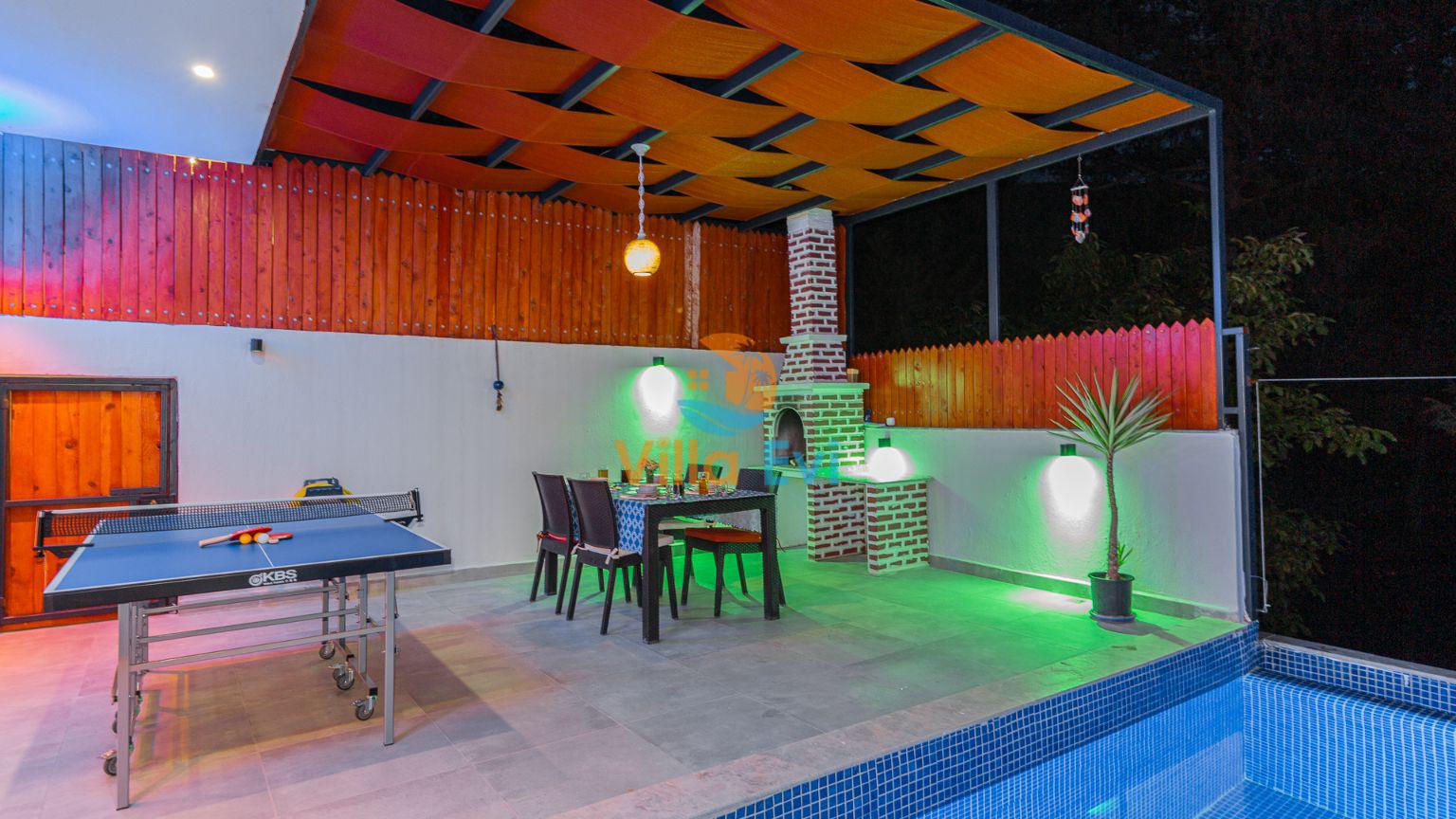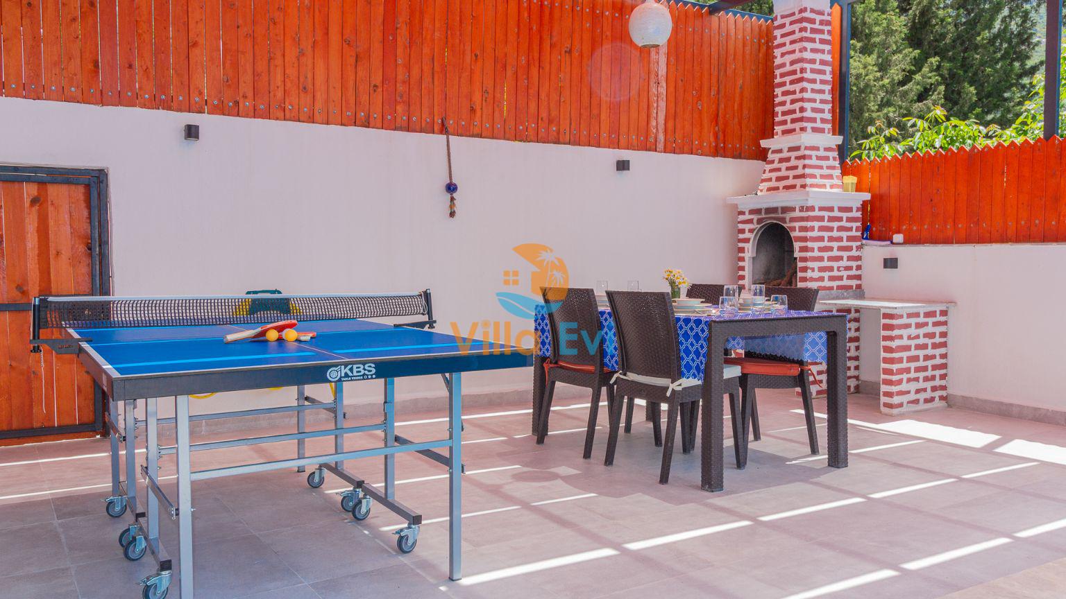 Villamız, modern ve zevkli mobilyalarla dekore edilmiş iç mekanlara sahiptir. Konforunuz için her detayın düşünüldüğü bu şık yaşam alanında, kendinizi evinizde gibi hissedeceksiniz. Villaya ait özel yüzme havuzu, doğa manzarasının eşlik ettiği keyifli anlar geçirmeniz için özenle tasarlanmıştır. Güneşlenme terasında dinlenmek ve Akdeniz güneşiyle enerji depolamak isteyenler için ideal bir kaçış noktasıdır.