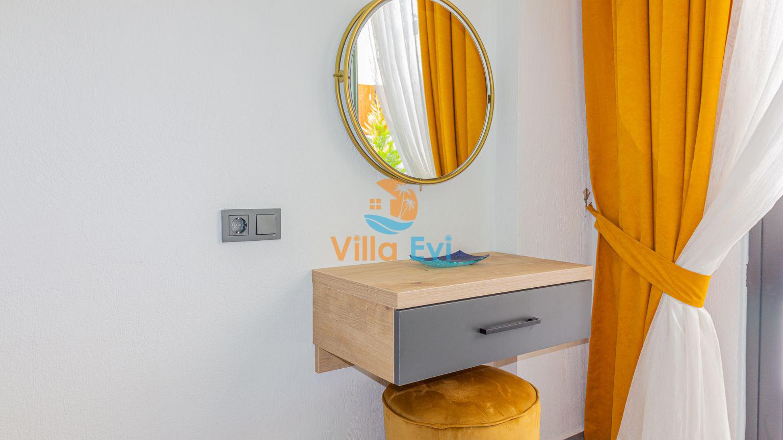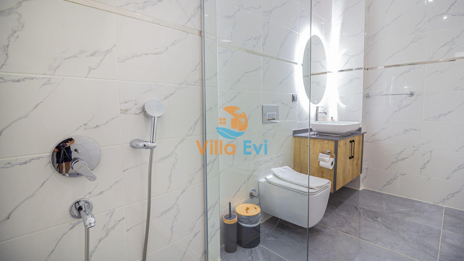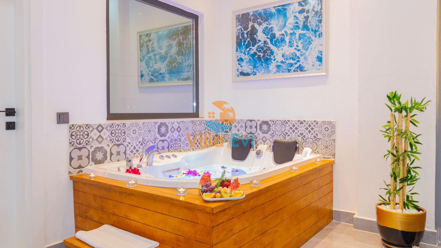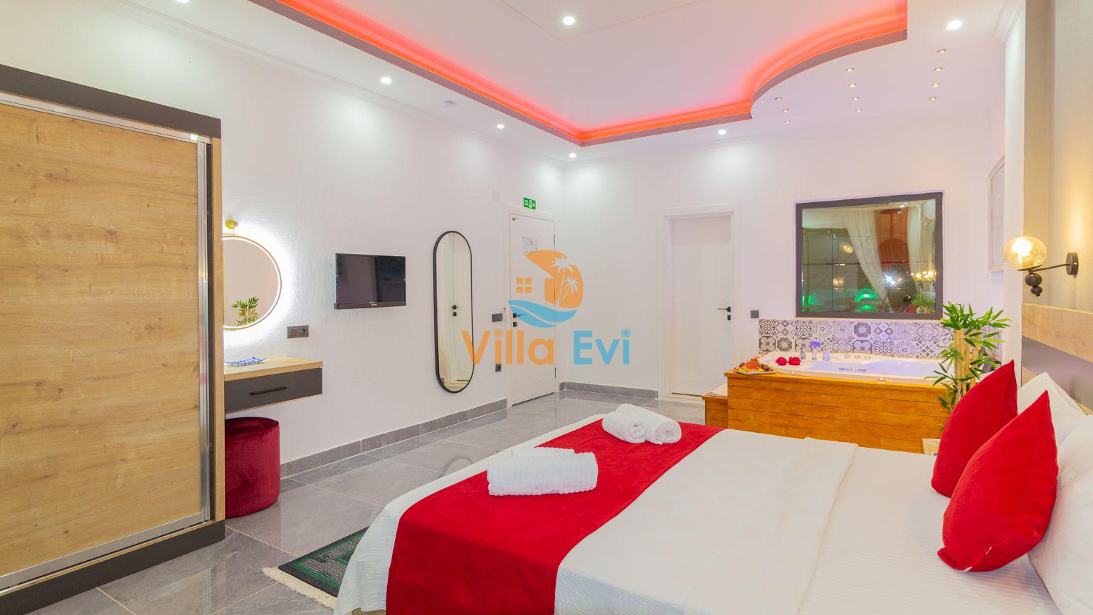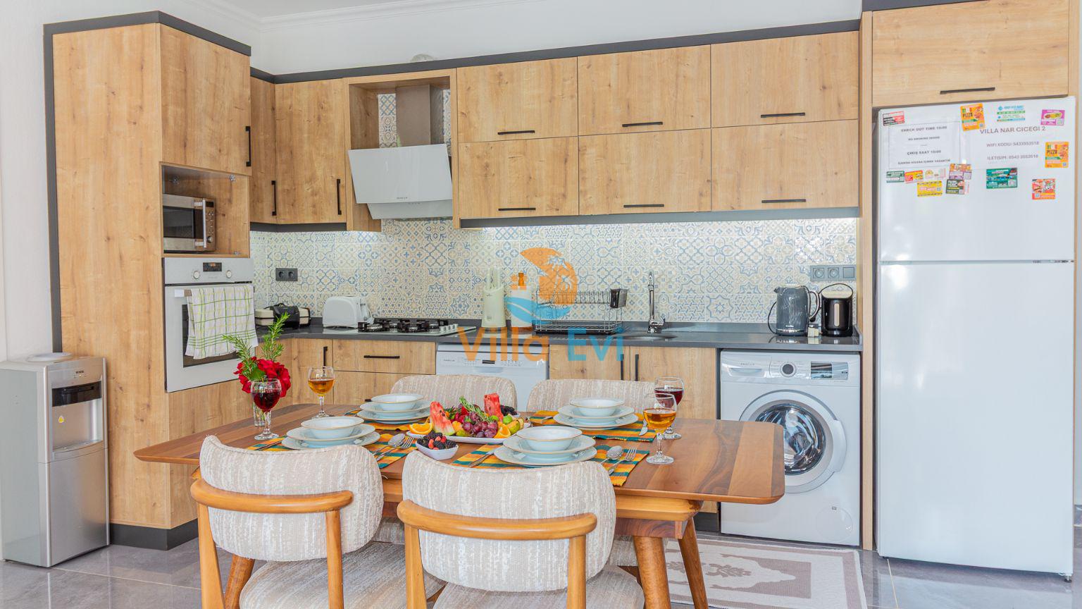 Villamız, modern ve zevkli mobilyalarla dekore edilmiş iç mekanlara sahiptir. Konforunuz için her detayın düşünüldüğü bu şık yaşam alanında, kendinizi evinizde gibi hissedeceksiniz. Villaya ait özel yüzme havuzu, doğa manzarasının eşlik ettiği keyifli anlar geçirmeniz için özenle tasarlanmıştır. Güneşlenme terasında dinlenmek ve Akdeniz güneşiyle enerji depolamak isteyenler için ideal bir kaçış noktasıdır.