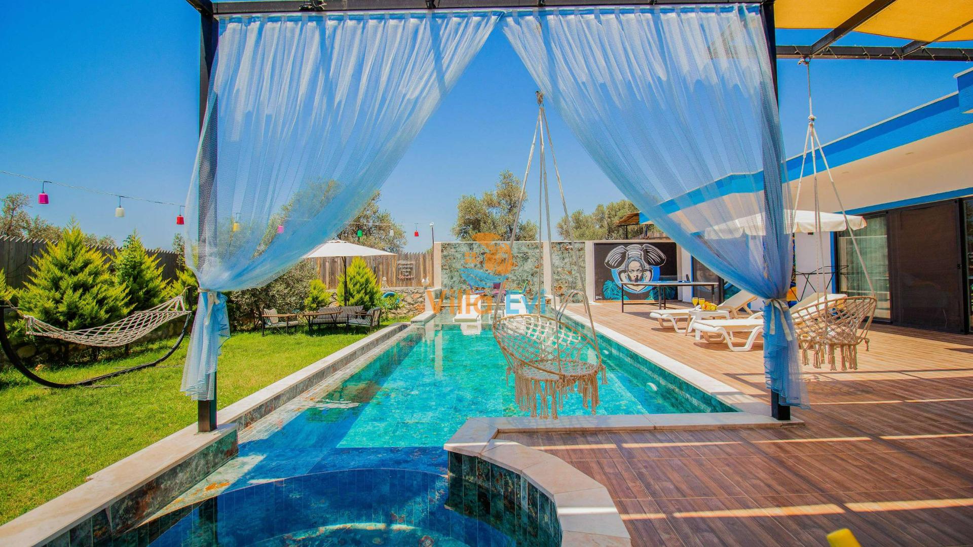Tamamen korunaklı yapıya sahip havuz alanı sayesinde villa, korunaklı havuzlu villalar kategorisinde yer almaktadır.