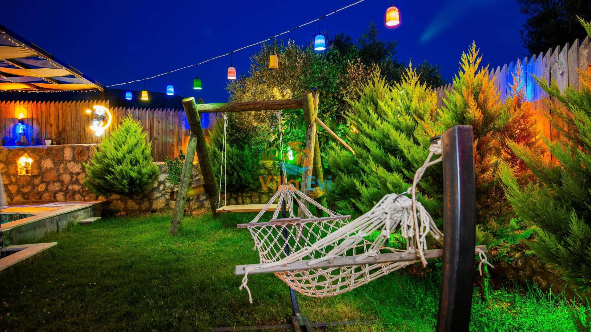 4 kişilik konaklama kapasitesi, 2 yatak odası, Korunaklı özel yüzme havuzu, Geniş bahçe ve havuz terası, Masa tenisi, Mini kaydırak, 2 adet bahçe salıncağı, Klima, TV ve İnternet