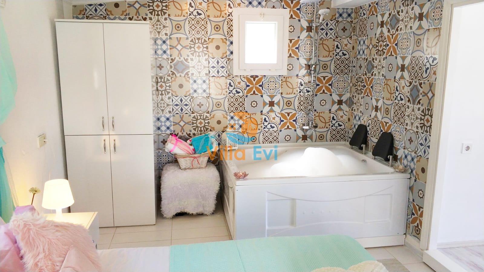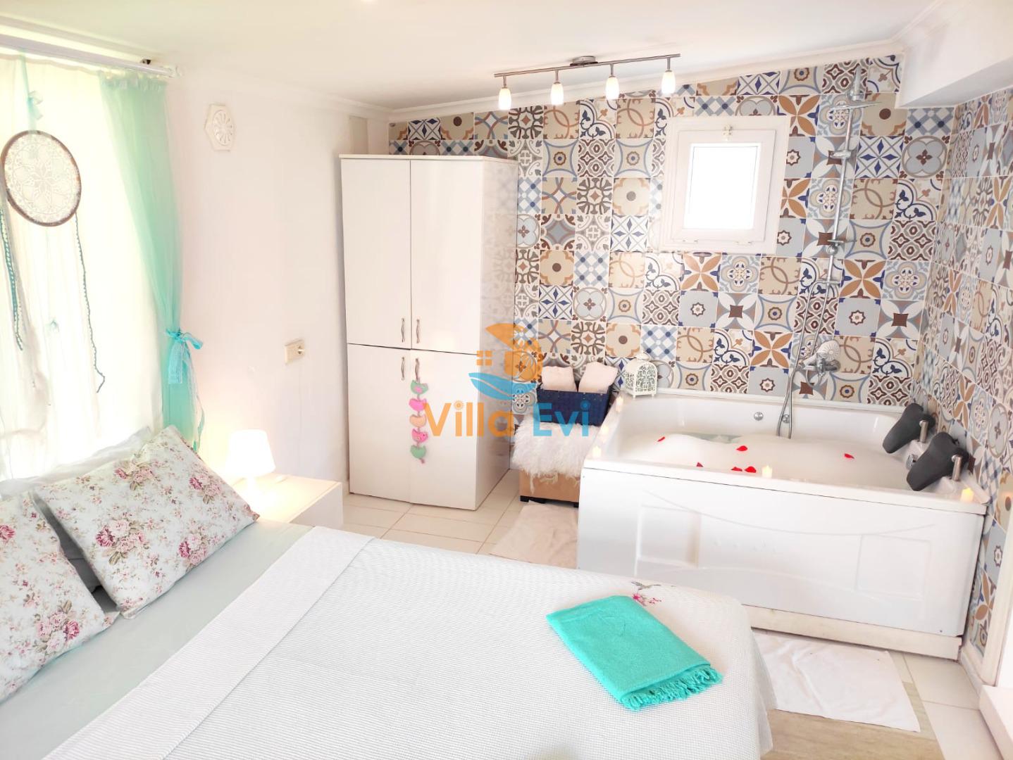1 yatak odası ve 1 banyosu bulunan villamız, 2 kişilik konaklama kapasitesi ile özellikle balayı villası ve romantik çift tatilleri için ideal bir tatil villasıdır. Korunaklı yapısı sayesinde muhafazakâr kiralık villalar arasında da öne çıkar.