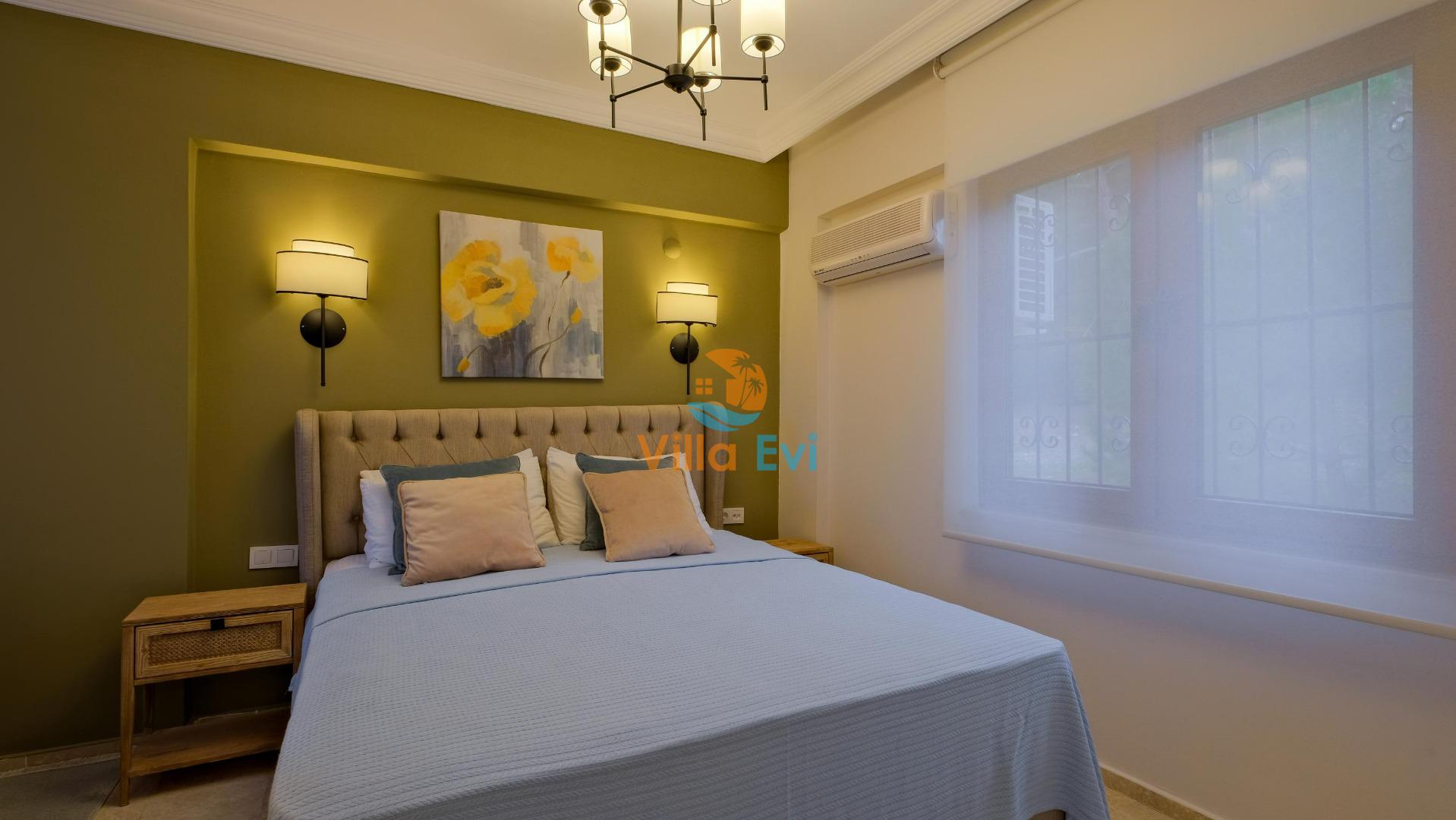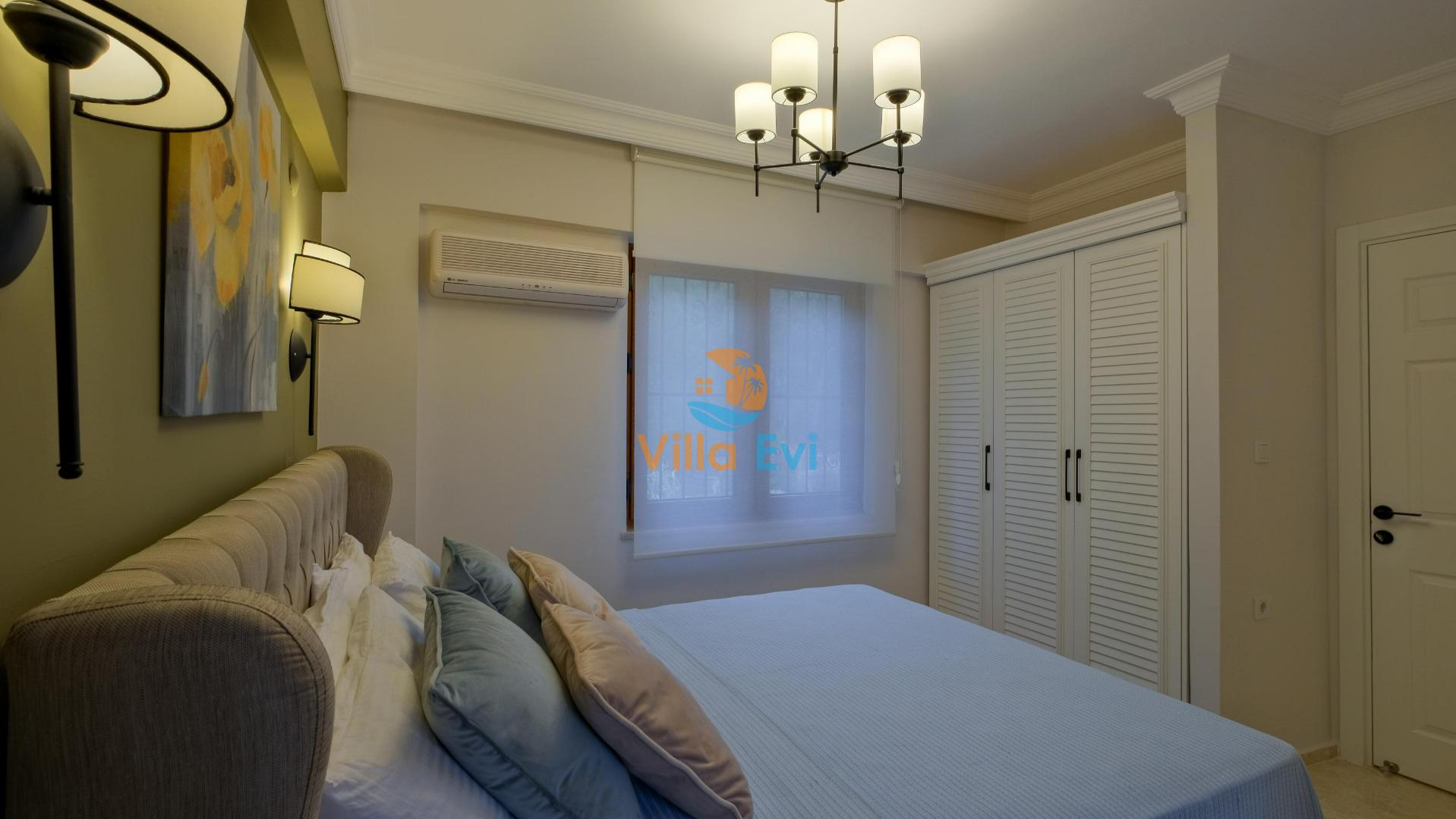 1. Yatak Odası: 1 adet çift kişilik yatak, klima, TV, özel banyo (duş & WC).