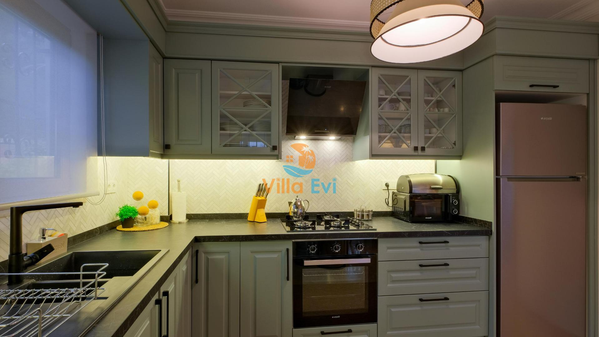 Tam donanımlı mutfakta; buzdolabı, bulaşık makinesi, çamaşır makinesi, fırın, ocak, mikrodalga, tost makinesi, kettle, çaydanlık, tencere-tava ve yemek takımları bulunmaktadır.