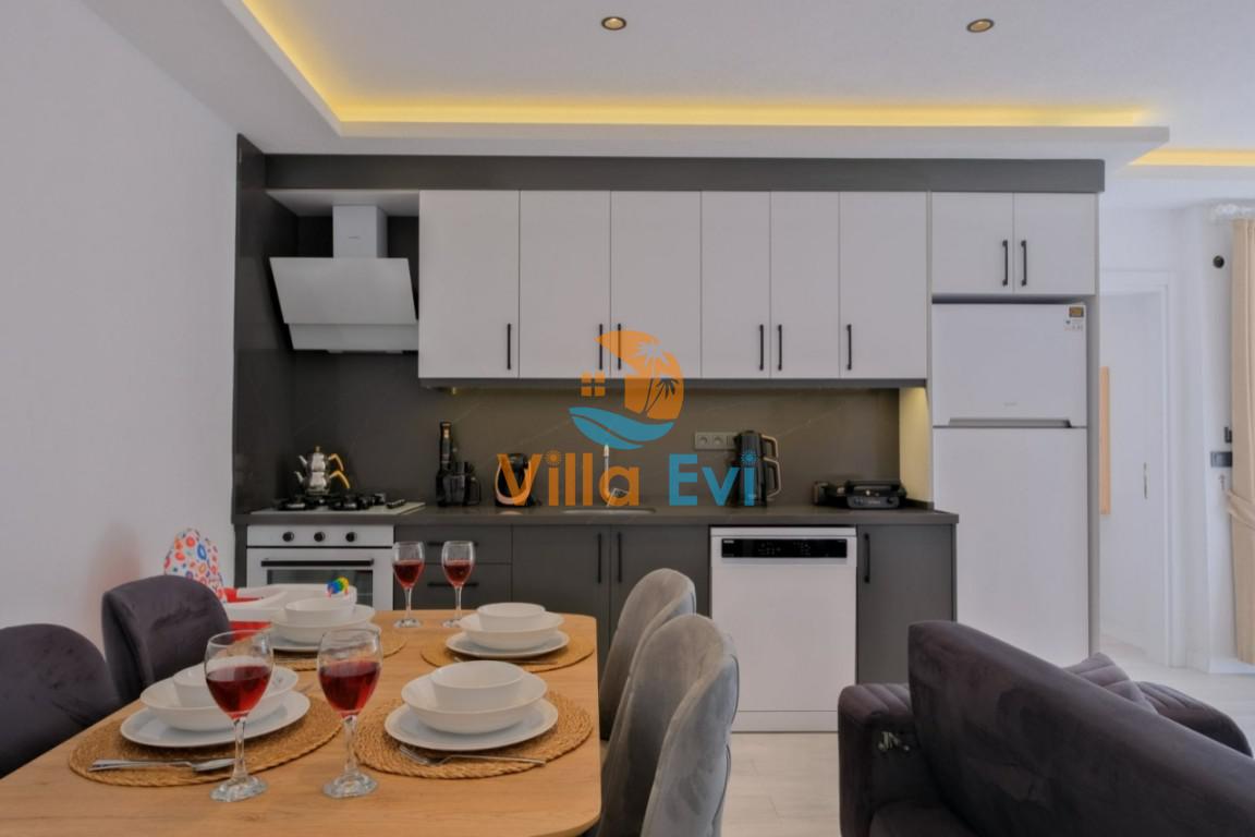 - Modern oturma grubu, 4 kişilik yemek masası, Mama sandalyesi, LCD TV ve uydu alıcısı, Klima, Havuz ve bahçeye direkt çıkış