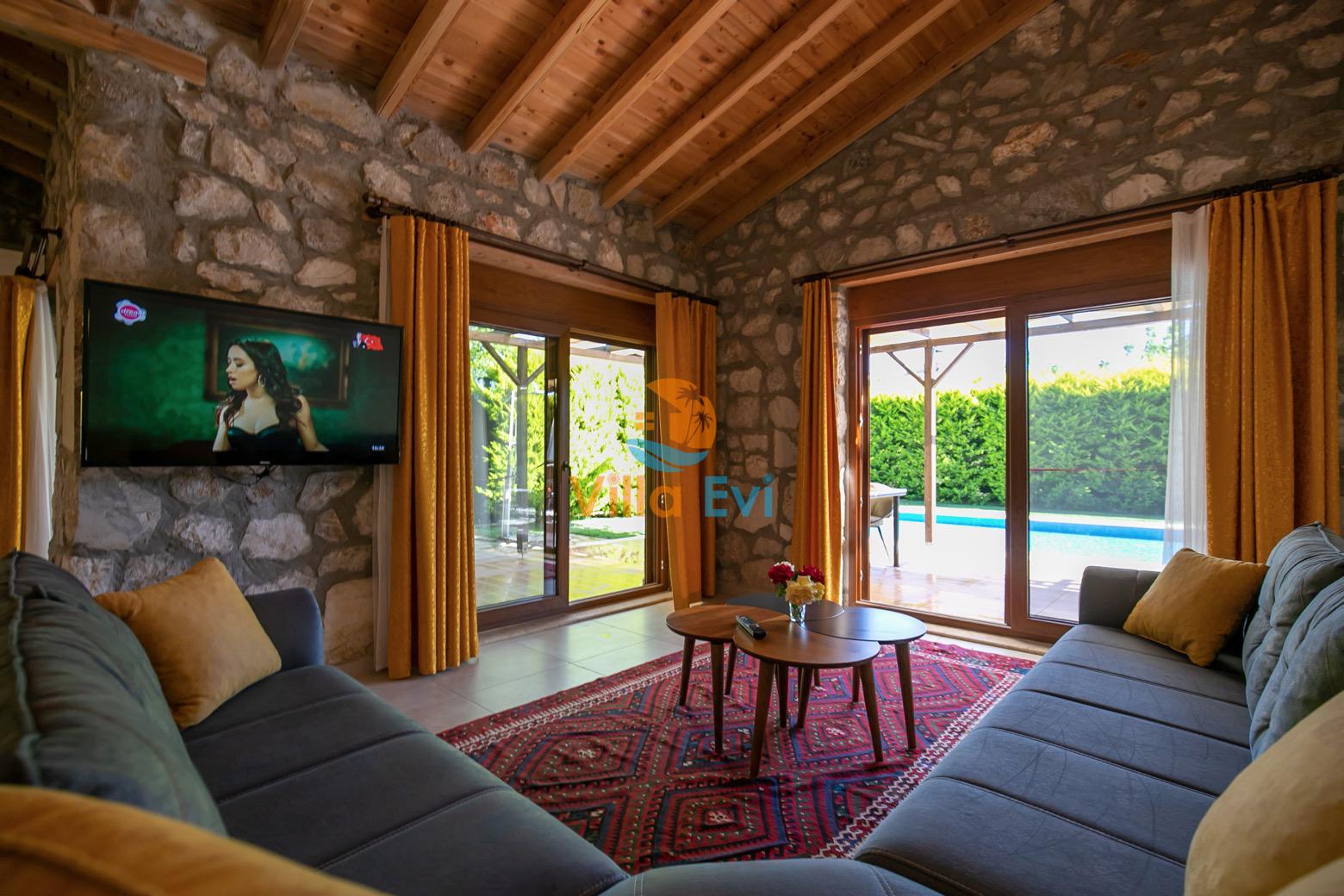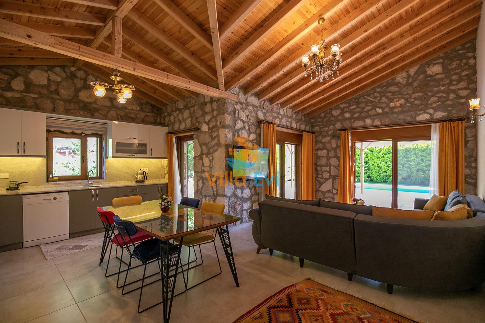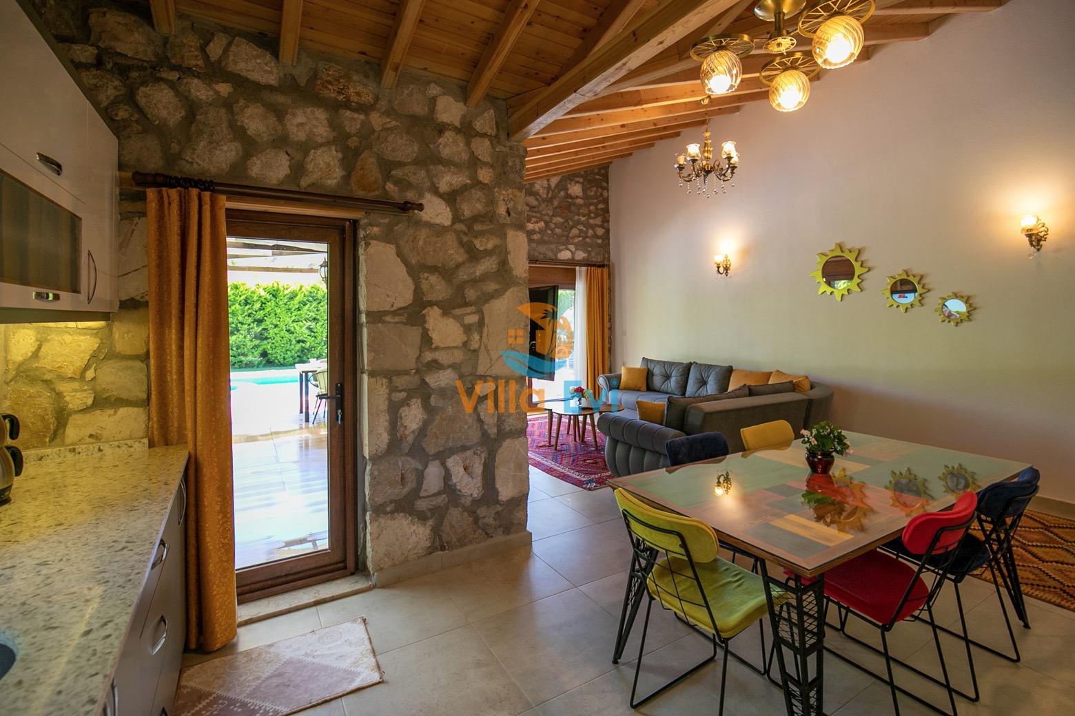 Villa Terra Su, Fethiye Kayaköy bölgesinde konumlanmıştır ve 2 yatak odasıyla, 4 kişilik konaklama imkanı sunar. Çocuk Havuzu ve temiz havası sayesinde son derece konforlu bir tatil geçirebileceğiniz Villa Su muhafazakar olarak dizayn edilmiş; çekirdek aileler ve balayı çiftleri için oldukça ideal seçeneklerden biridir. Geniş bahçe içerisinde taş ve ahşap mimari ile bezenerek kurulu olan villa oldukça kullanışlı ve zevkli bir şekilde döşenmiştir.