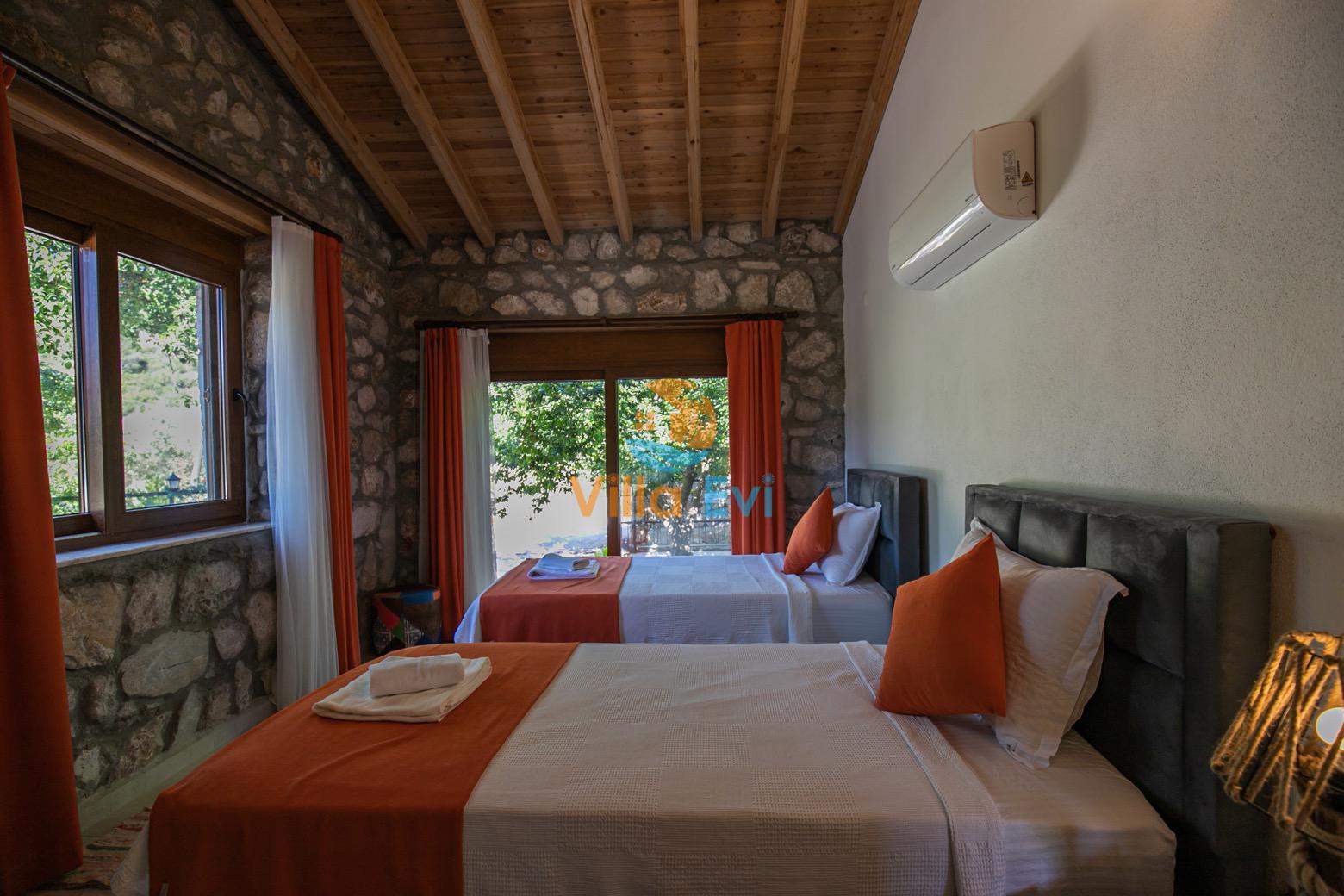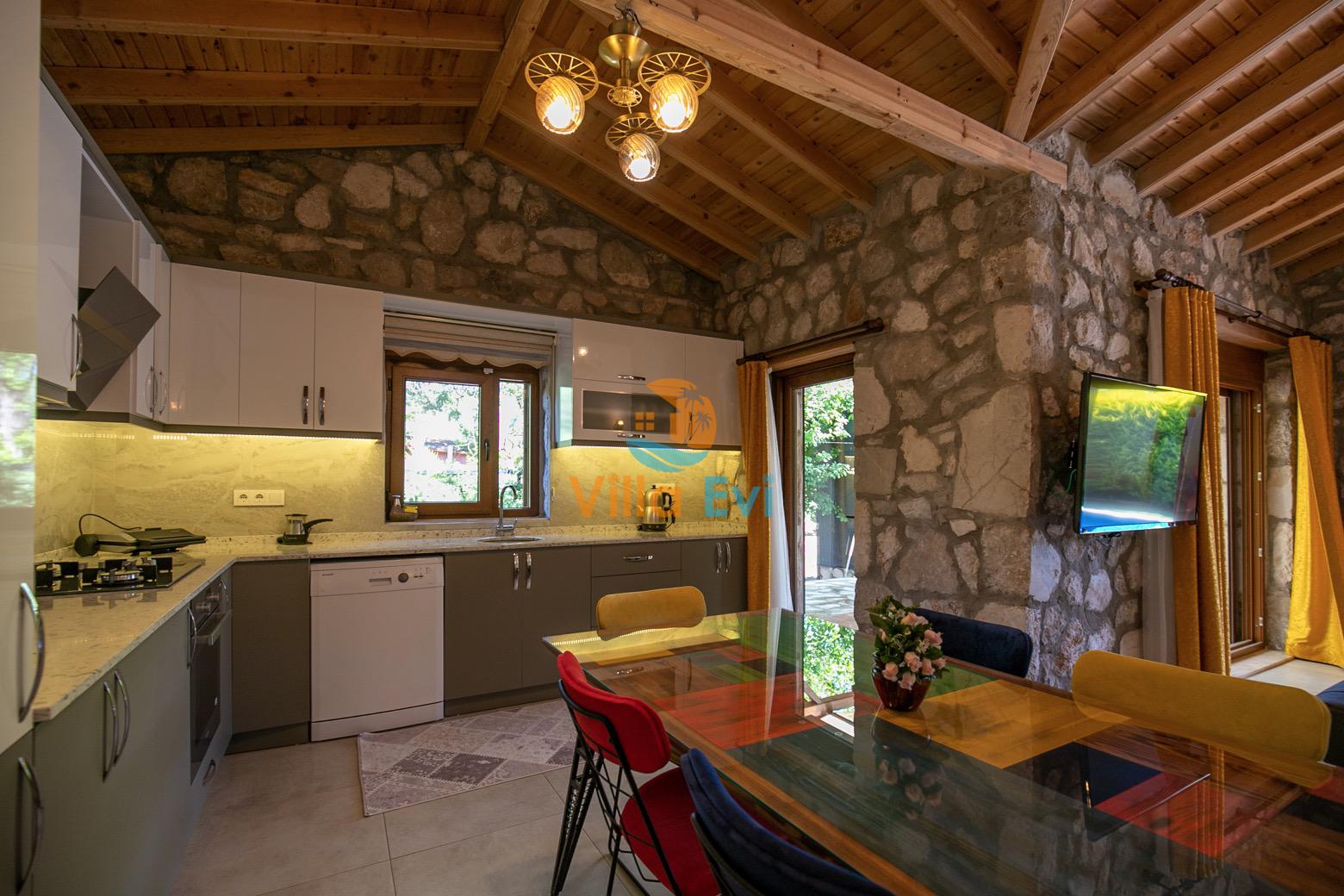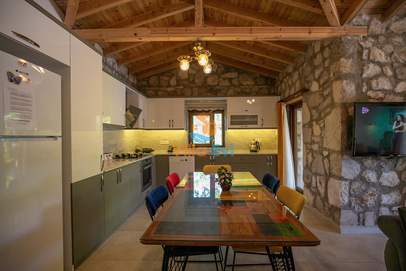 Villa Terra Su, Fethiye Kayaköy bölgesinde konumlanmıştır ve 2 yatak odasıyla, 4 kişilik konaklama imkanı sunar. Çocuk Havuzu ve temiz havası sayesinde son derece konforlu bir tatil geçirebileceğiniz Villa Su muhafazakar olarak dizayn edilmiş; çekirdek aileler ve balayı çiftleri için oldukça ideal seçeneklerden biridir. Geniş bahçe içerisinde taş ve ahşap mimari ile bezenerek kurulu olan villa oldukça kullanışlı ve zevkli bir şekilde döşenmiştir.