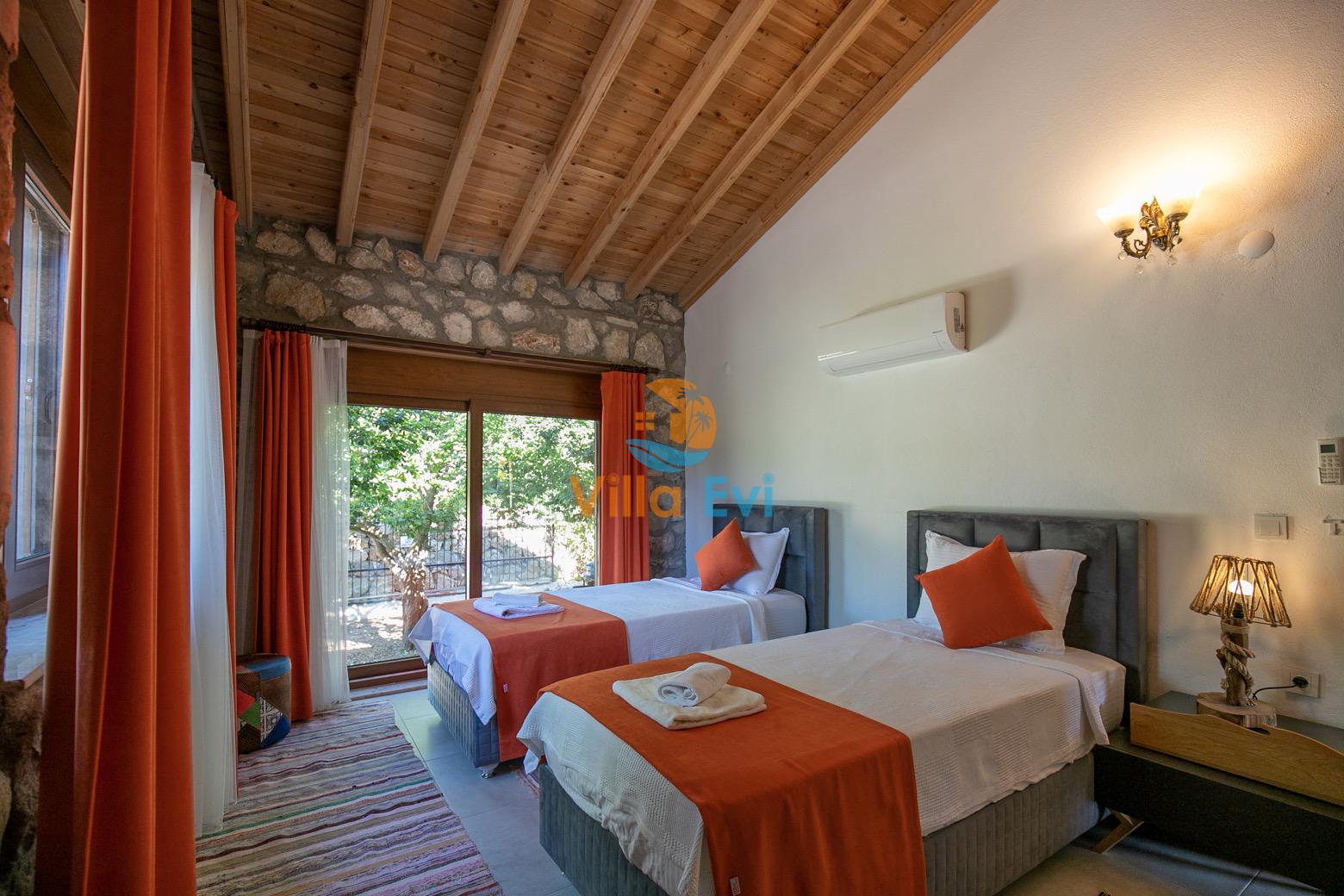 2. Yatak Odası : 2 adet tek kişilik yatak, makyaj masası, klima, elbise dolabı, komodin, Banyo&WC bulunmaktadır.