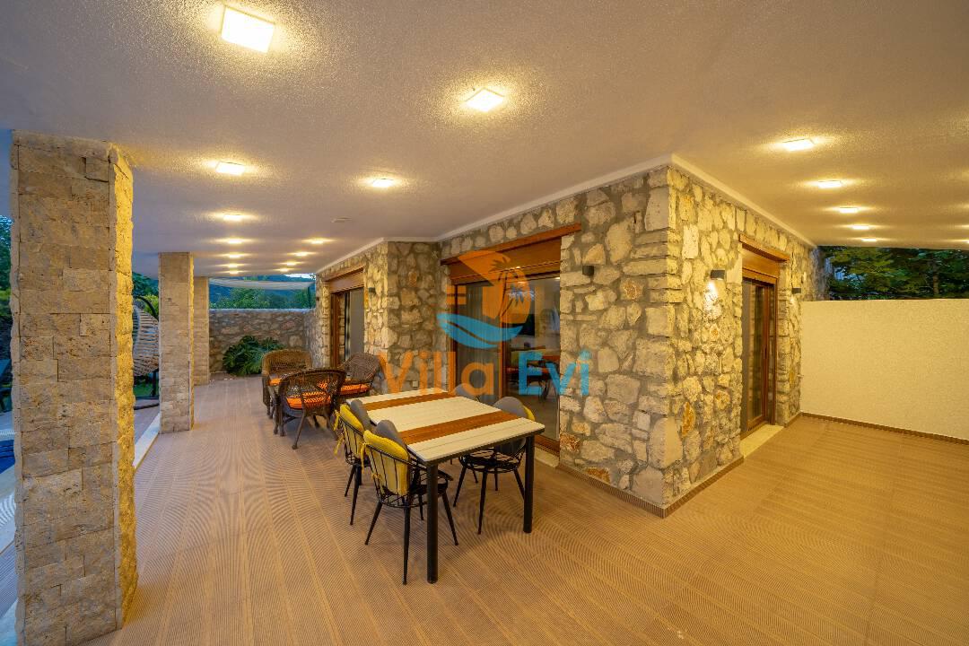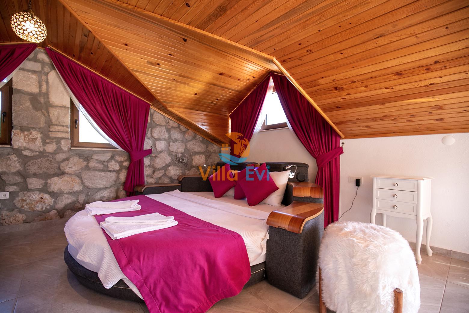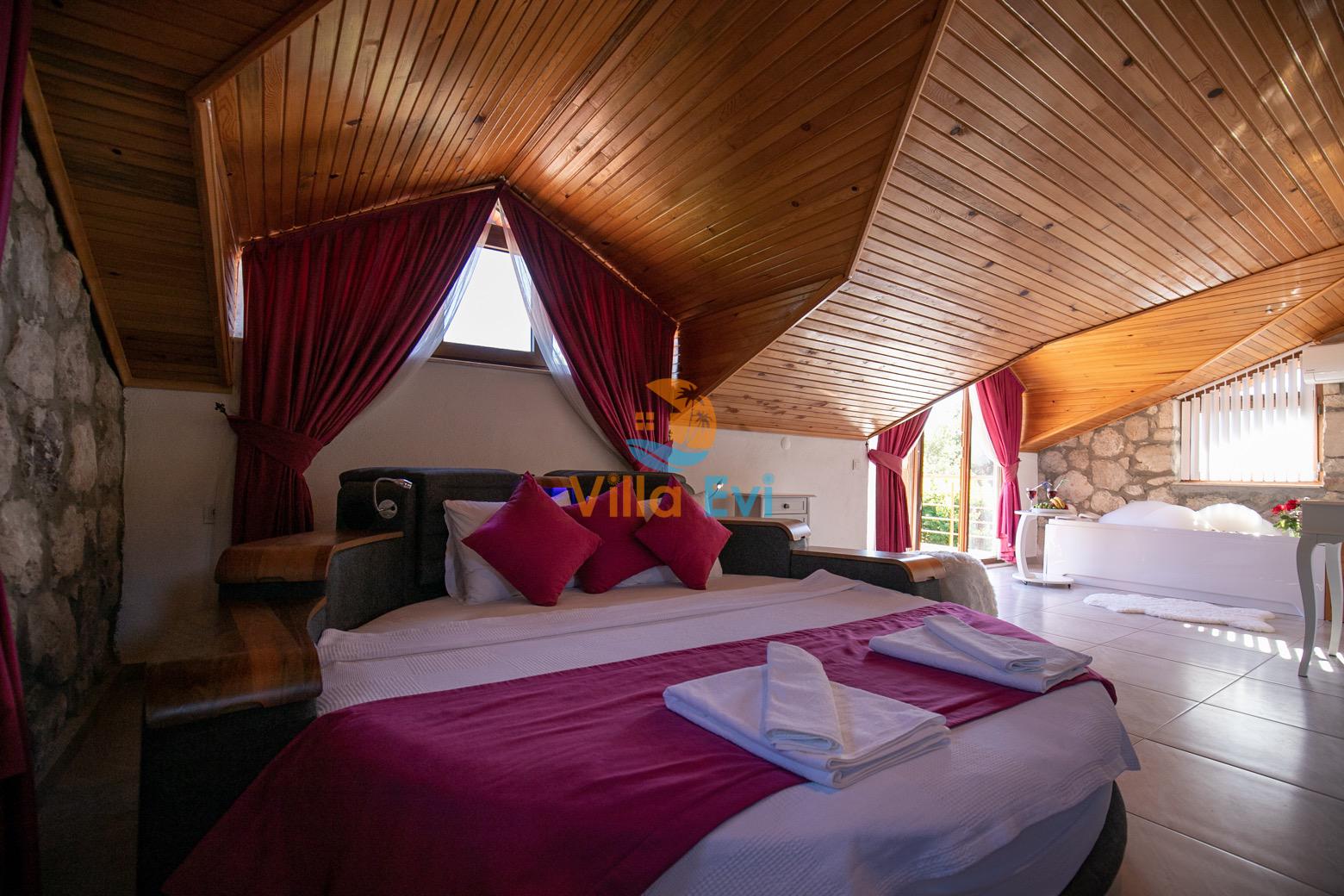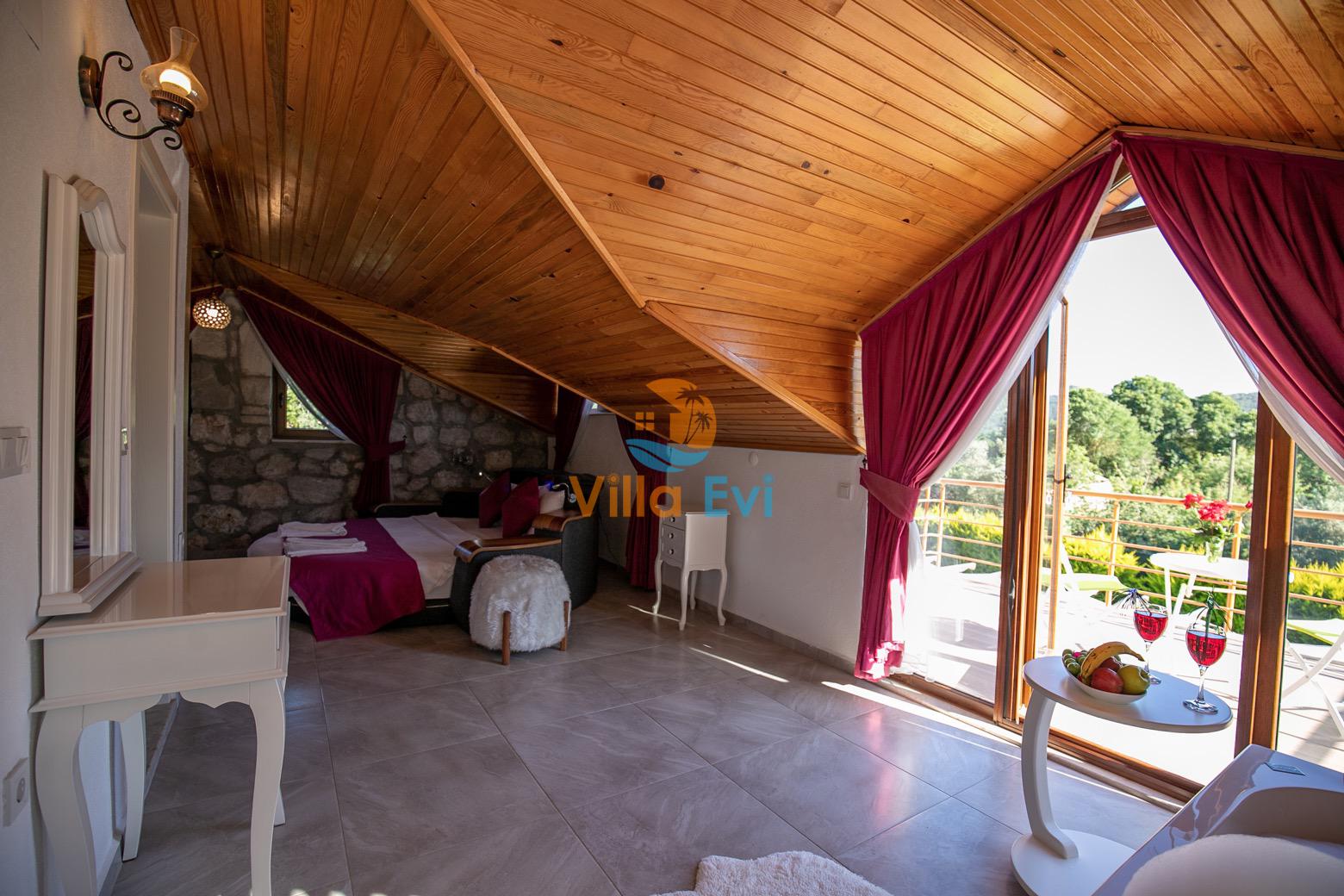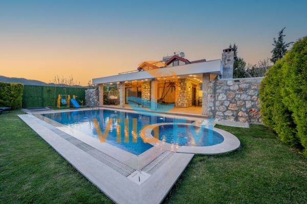 Taş ve ahşabın kusursuz uyumuyla tasarlanan villa, geniş bahçesi, çocuk havuzu, jakuzi ve mevsim şartlarına uygun ekipmanlarıyla keyifli bir tatil deneyimi sunar.