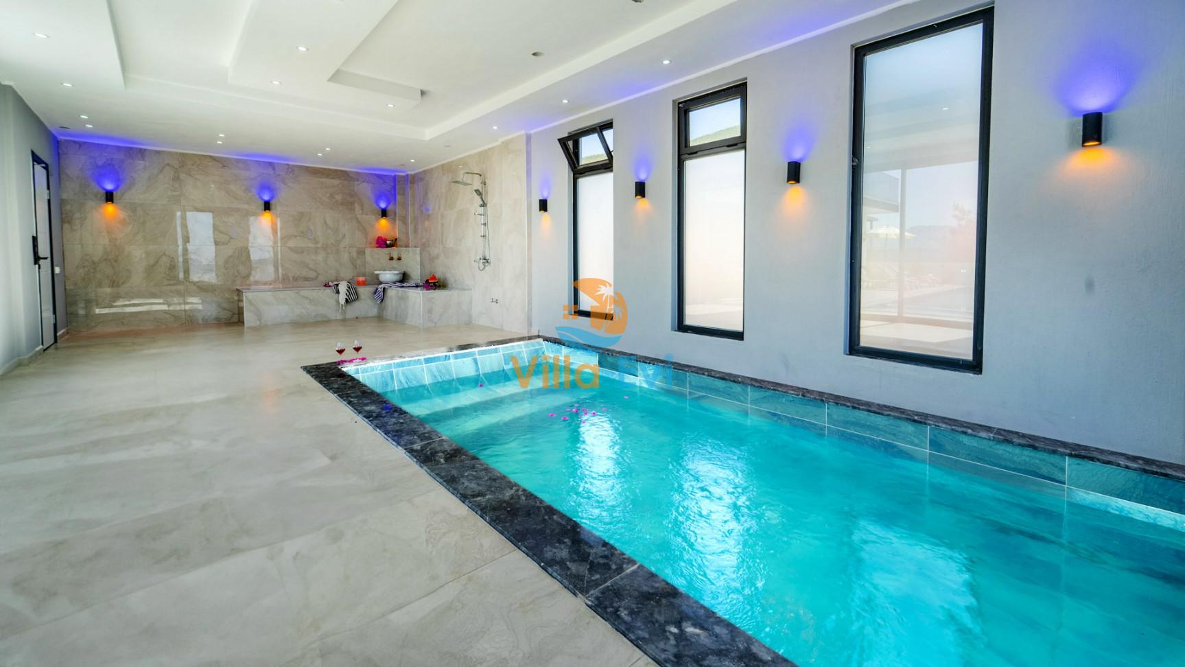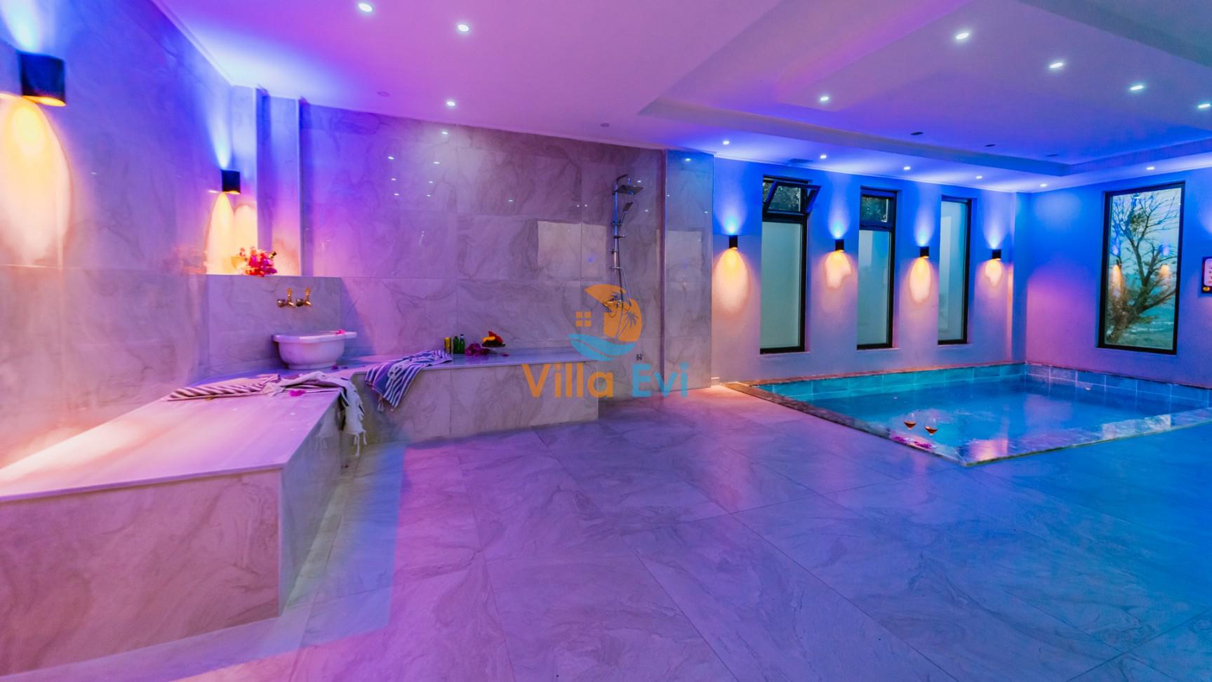 Isıtmalı kapalı havuzu, hamam ve sauna ayrıcalıkları, panoramik deniz ve doğa manzarasıyla dört mevsim konfor sunan bu tatil villası, hem balayı villası arayan çiftler hem de küçük aileler için ideal bir villa kiralama alternatifidir.