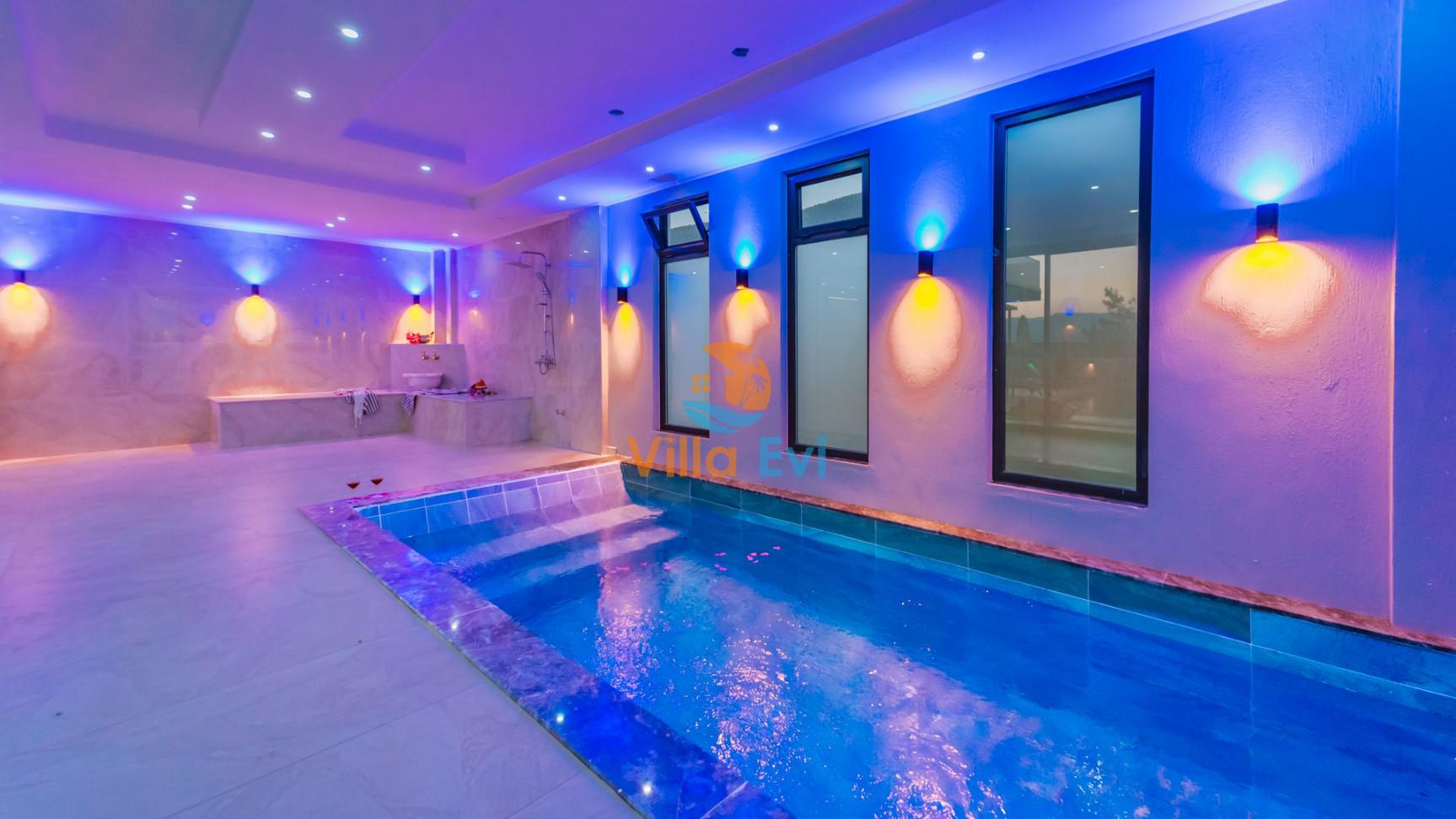 Isıtmalı kapalı havuz, hamam, sauna ve lüks detaylarıyla fark yaratan Villa Water Moon’da yerinizi ayırtın.